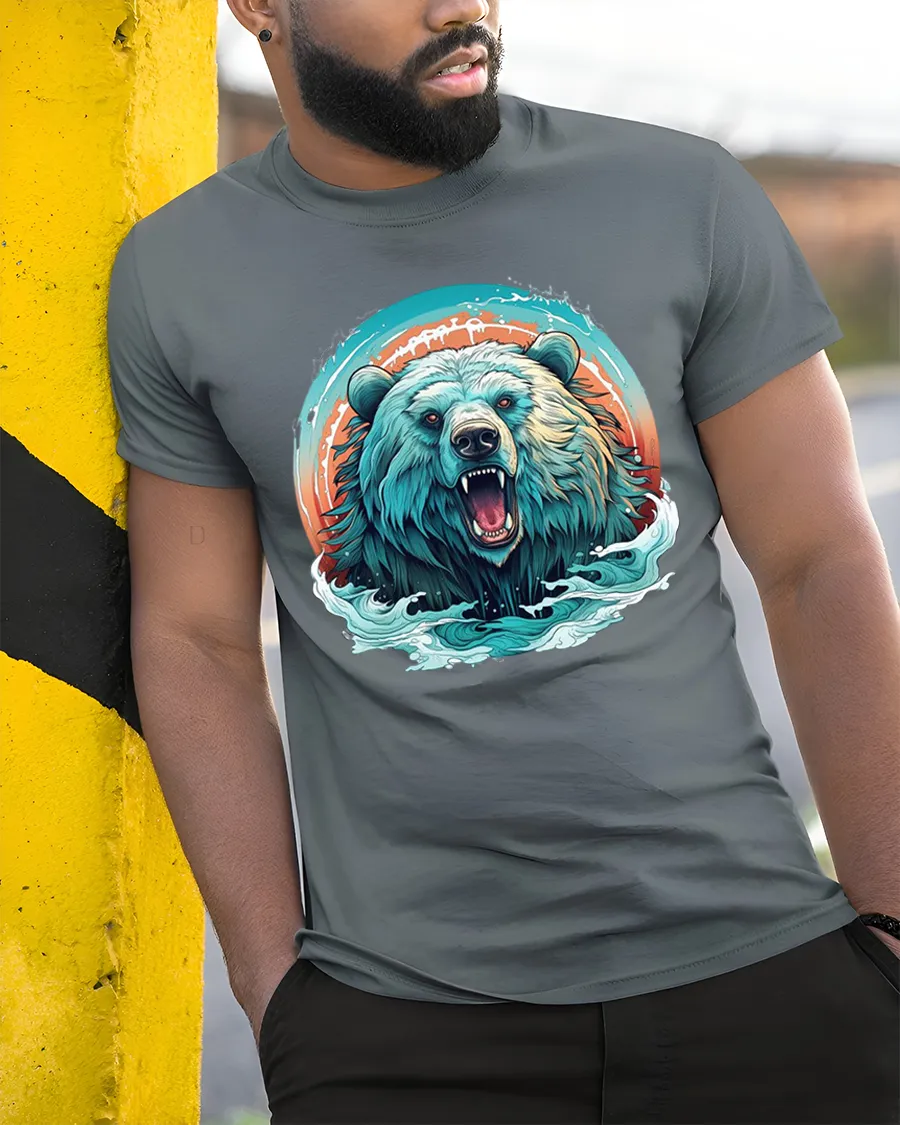 The Roaring Wild Bear Power Art Graphic Tshirt Tee Design captures raw strength untamed energy and the fearless spirit of the wild.