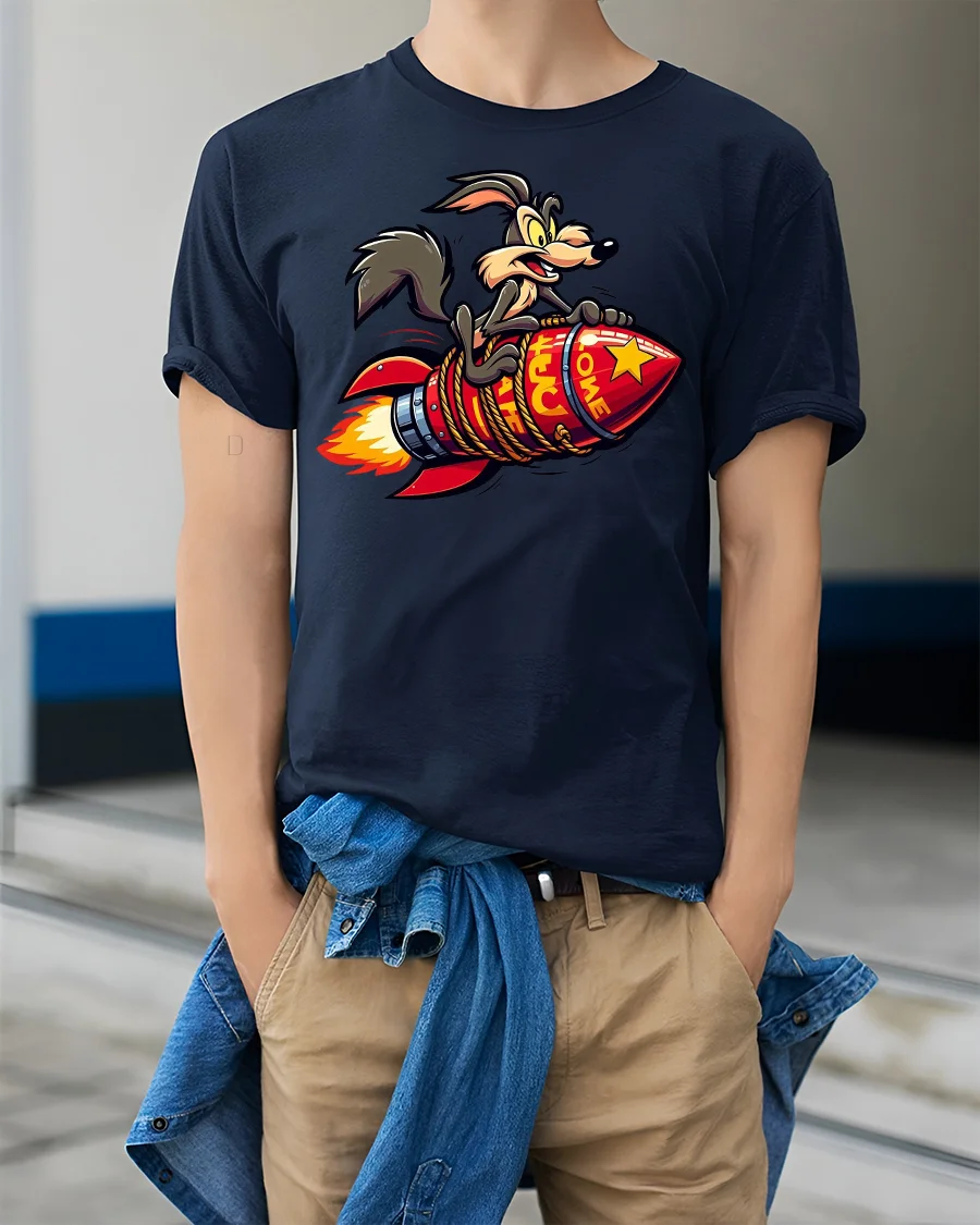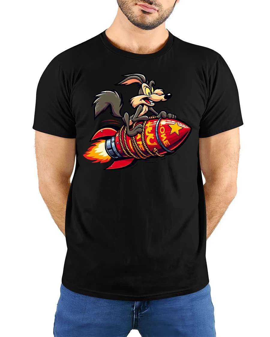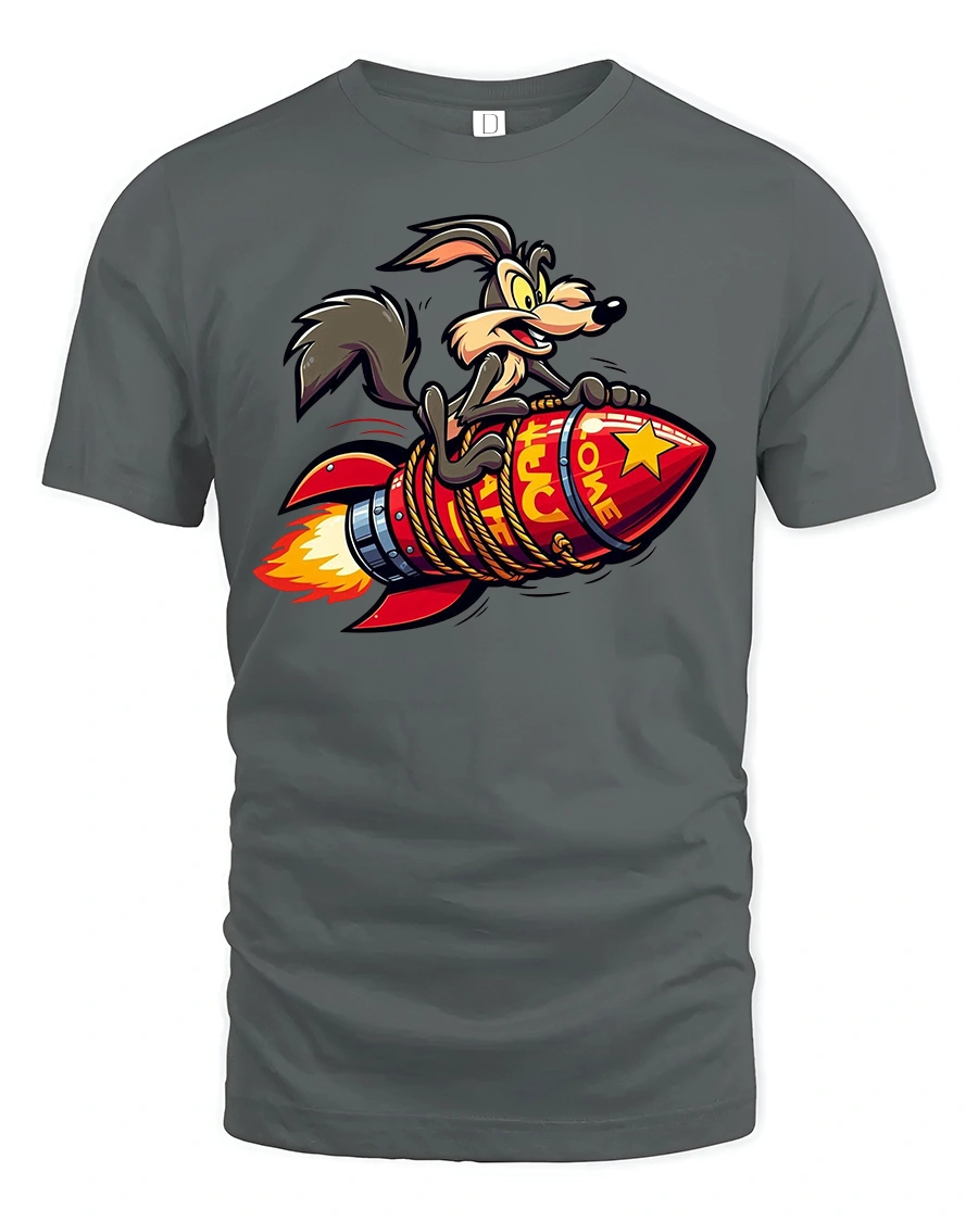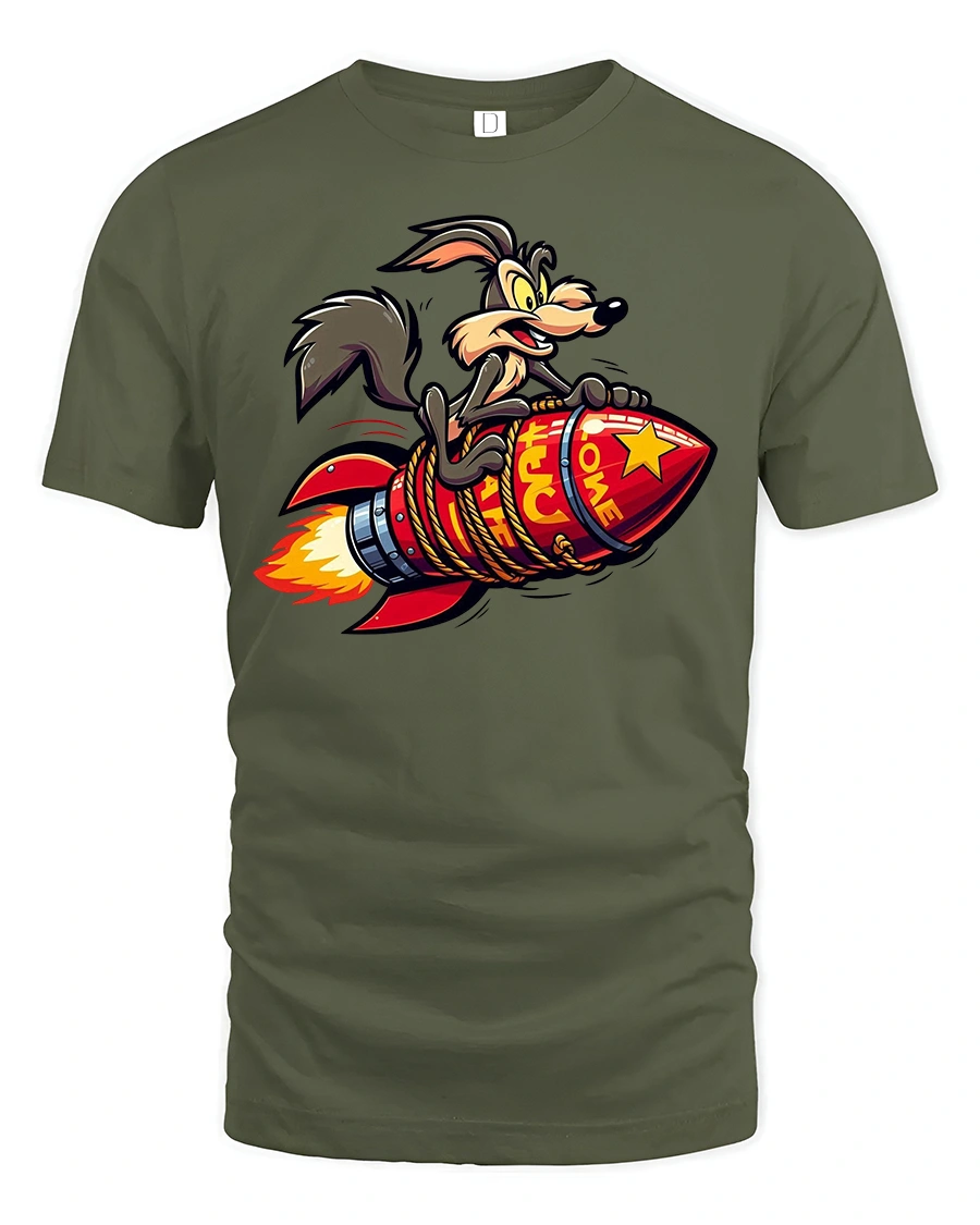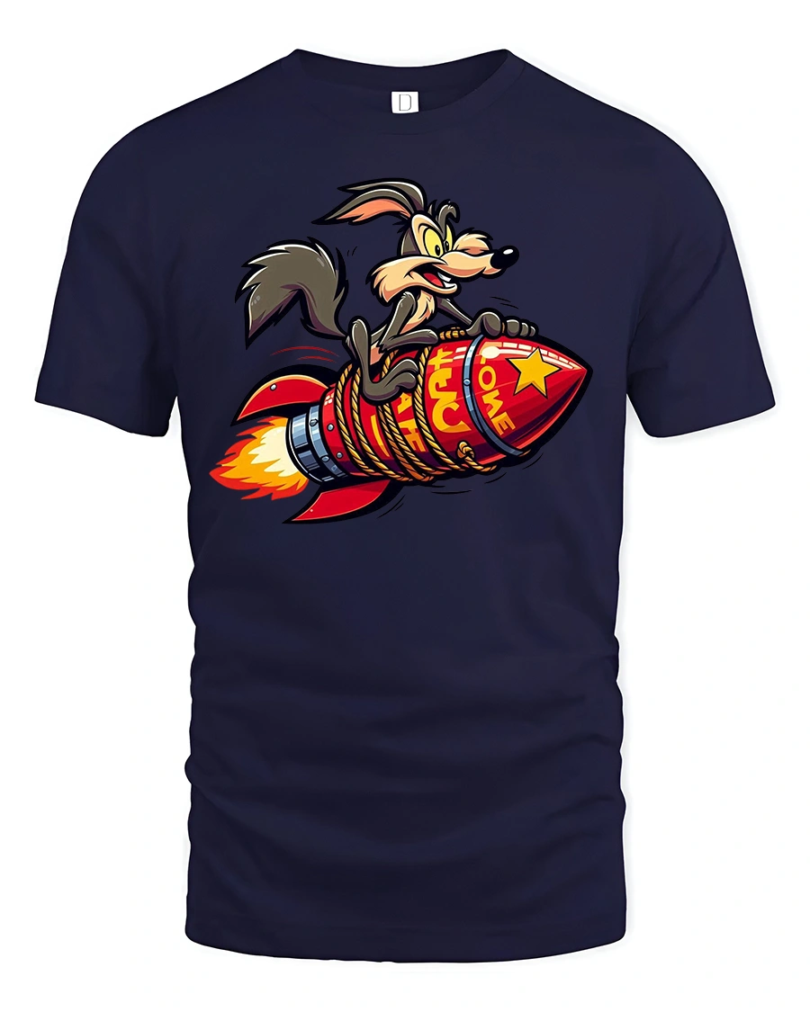 The Funny Rocket Riding Coyote Cartoon Graphic T-shirt is perfect for fans of bold humor and wild cartoon-style prints. Featuring a crazy coyote clinging to a rocket as it blasts off, this tee delivers both fun and attitude in one eye-catching design. It’s a great choice for anyone who loves quirky graphics and retro cartoon vibes.