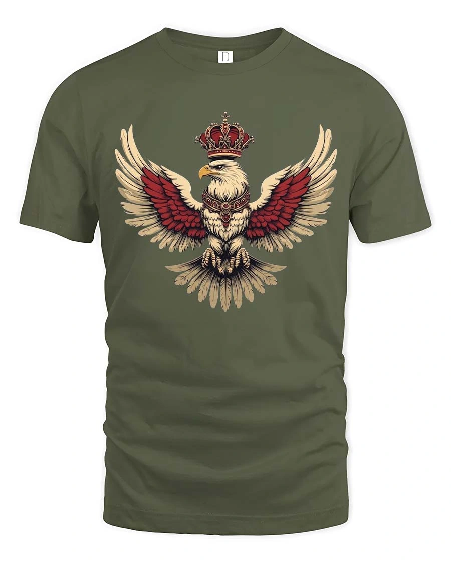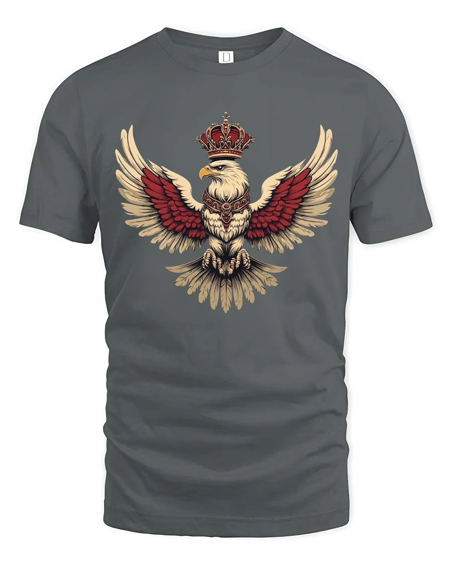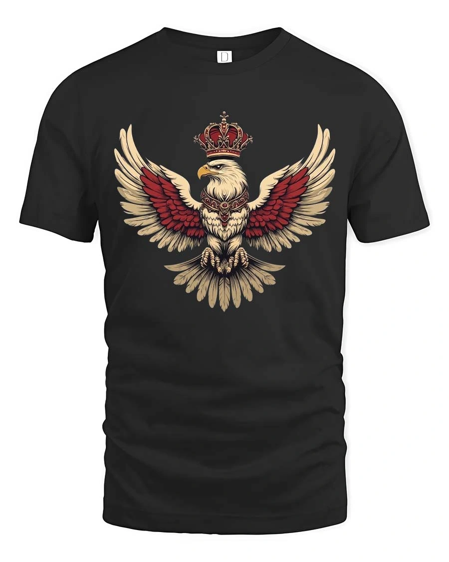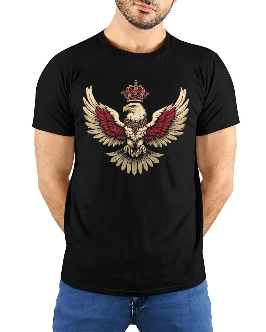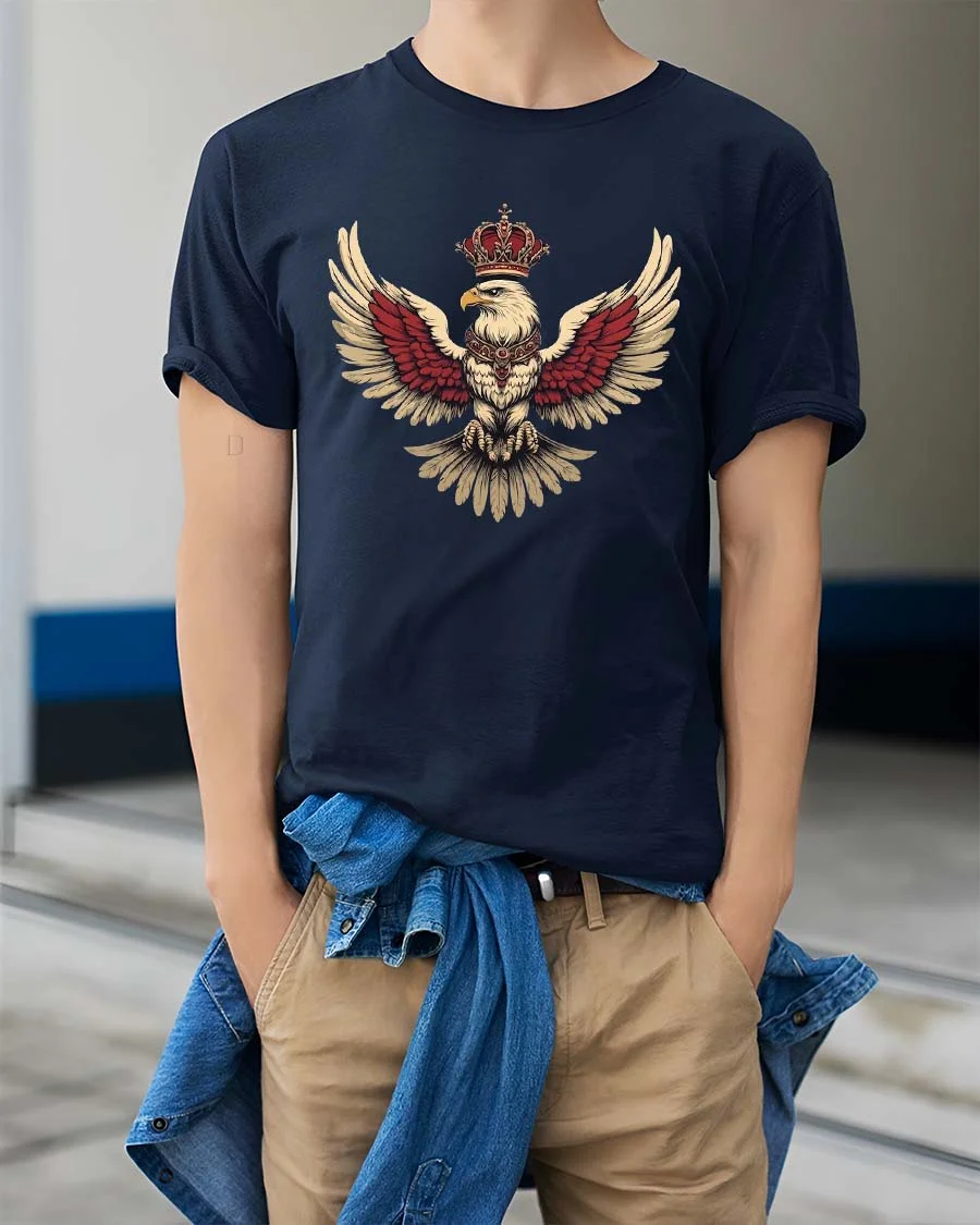 Featuring a powerful eagle with spread wings wearing a detailed crown, this graphic tee represents leadership and confidence with a striking visual impact.