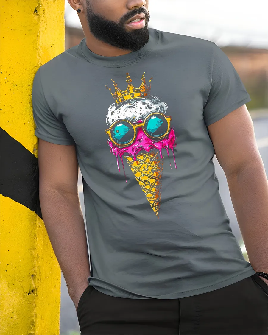 Royal Ice Cream King Graphic Tee With Dripping Street Art Style brings fun attitude and bold personality into one eye catching design.
