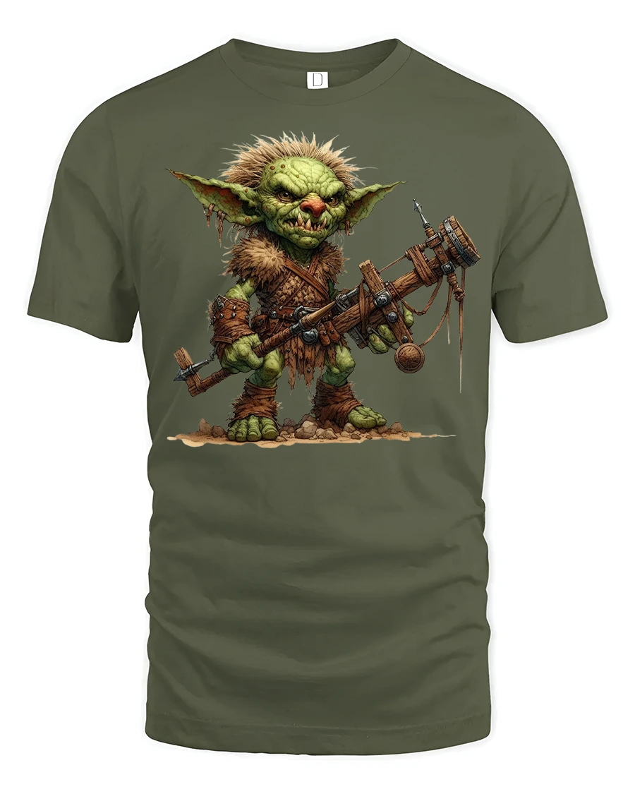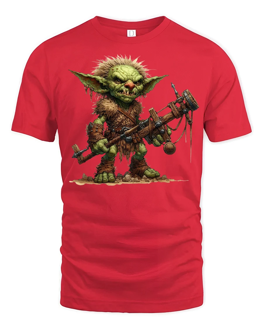 The Savage Goblin Fighter Printed Tee for RPG Fans is a must-have for fans of fantasy, RPGs, and epic monster lore. Featuring a detailed green goblin warrior armed with a massive crossbow and rugged battle gear, this tee captures the dark and adventurous spirit of fantasy worlds. Its bold and vivid design makes it a standout piece for gamers, roleplayers, and collectors of fantasy-inspired apparel.