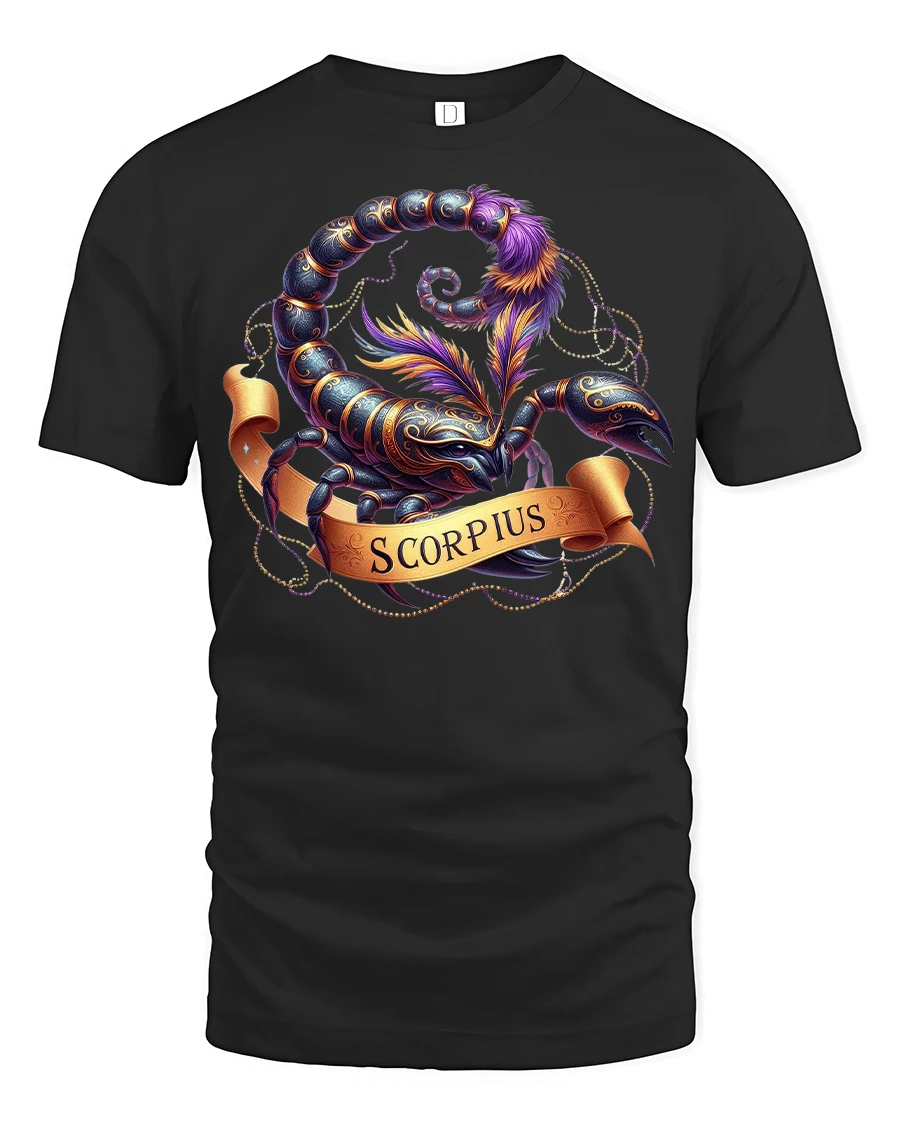 Scorpius Zodiac Scorpion Art Graphic T-Shirt for Astrology Fans showcases a bold, elegant interpretation of the Scorpius star sign. Featuring an intricately detailed scorpion with ornate patterns, rich colors, and a flowing ribbon displaying the Scorpius name, this design beautifully captures the intensity and mystique associated with this powerful zodiac. It’s perfect for astrology lovers, spiritual personalities, and anyone who feels connected to their celestial identity.