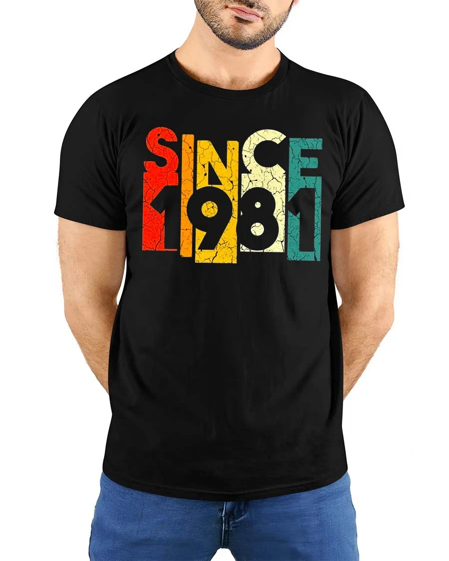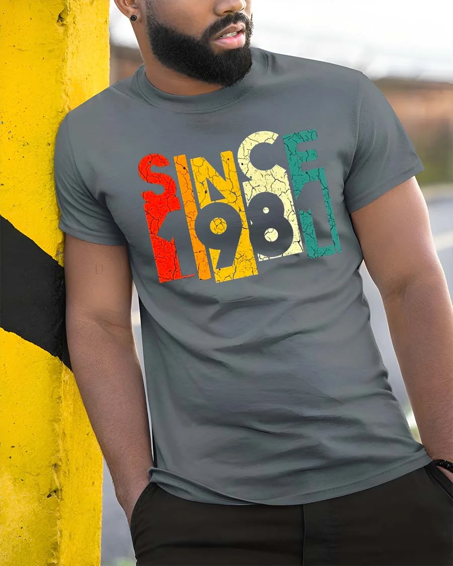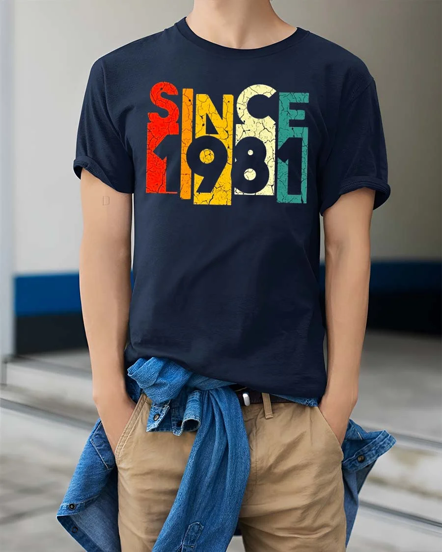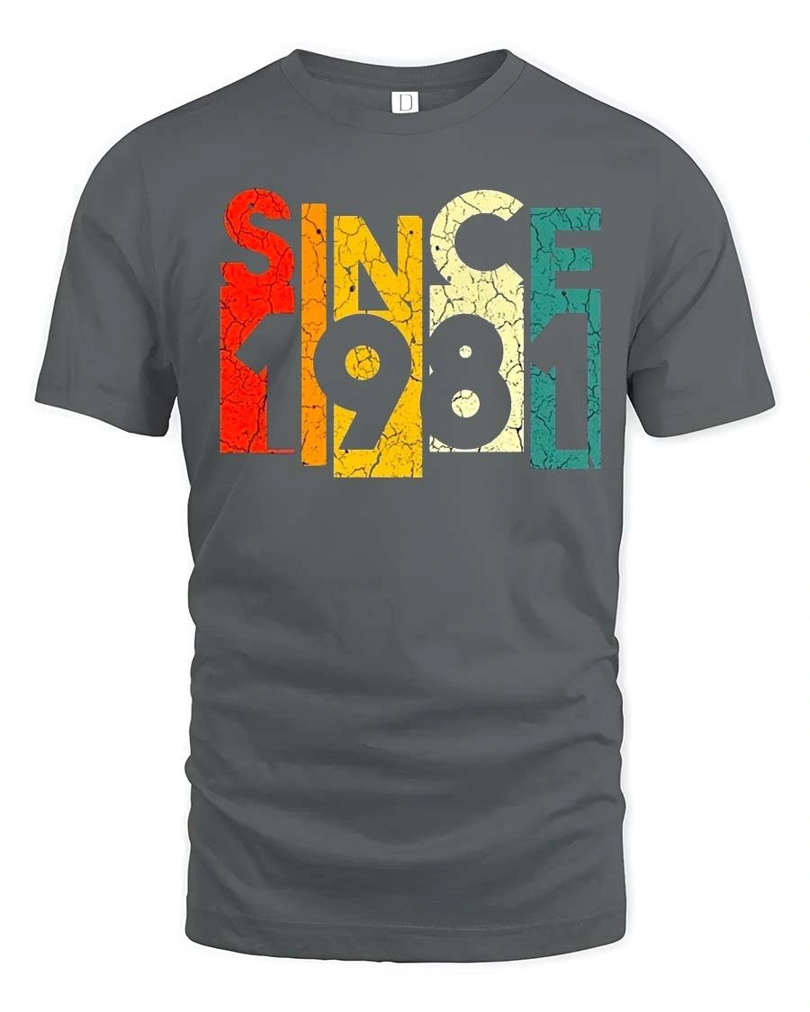 Since 1981 Vintage Retro Graphic T Shirt Classic Style features a bold and nostalgic design that celebrates a timeless year with retro flair.