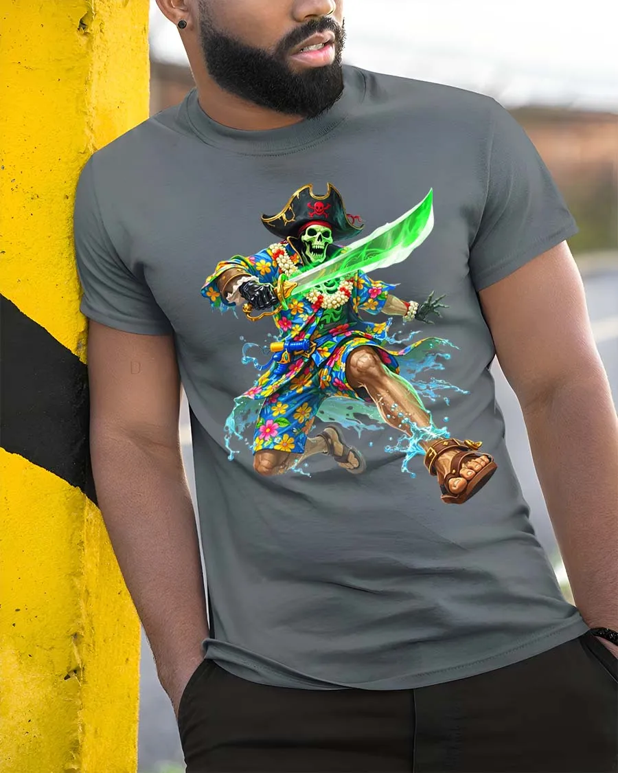 Skeleton Pirate Summer Graphic T Shirt Funny Beach Style
