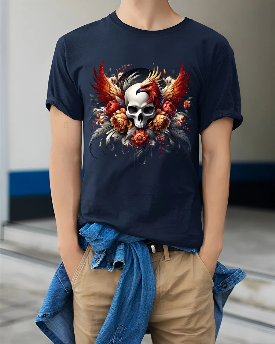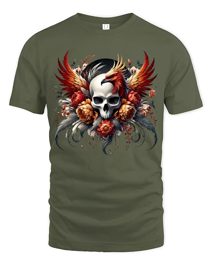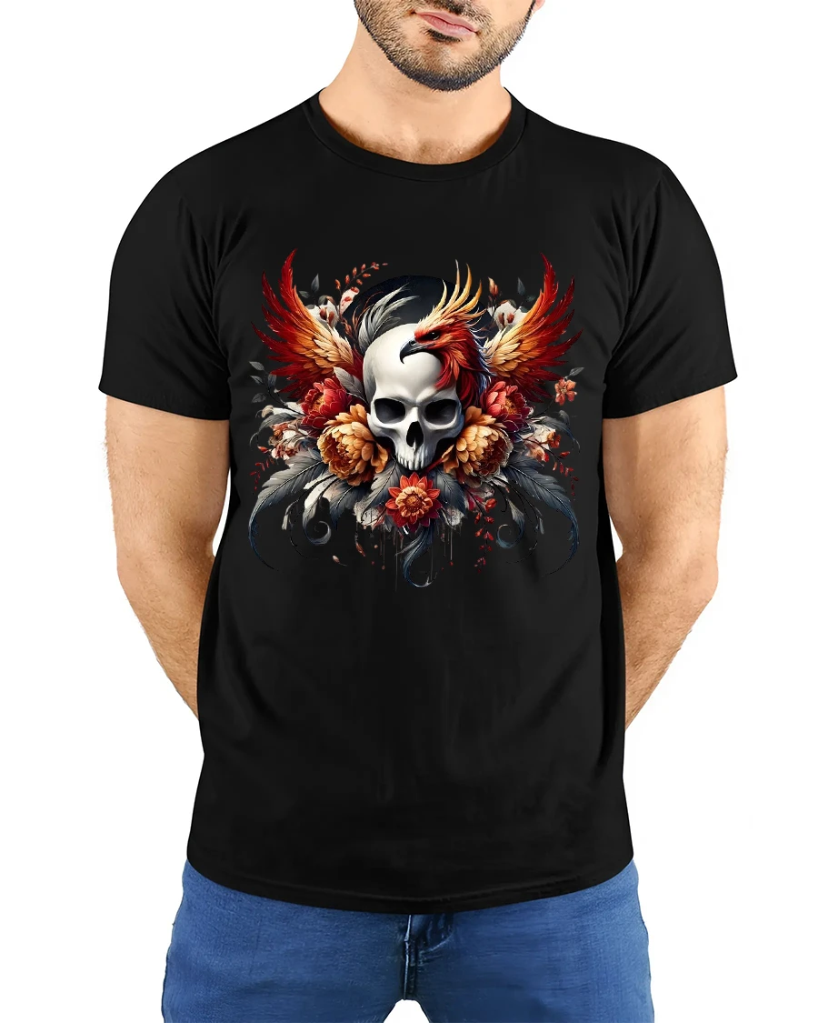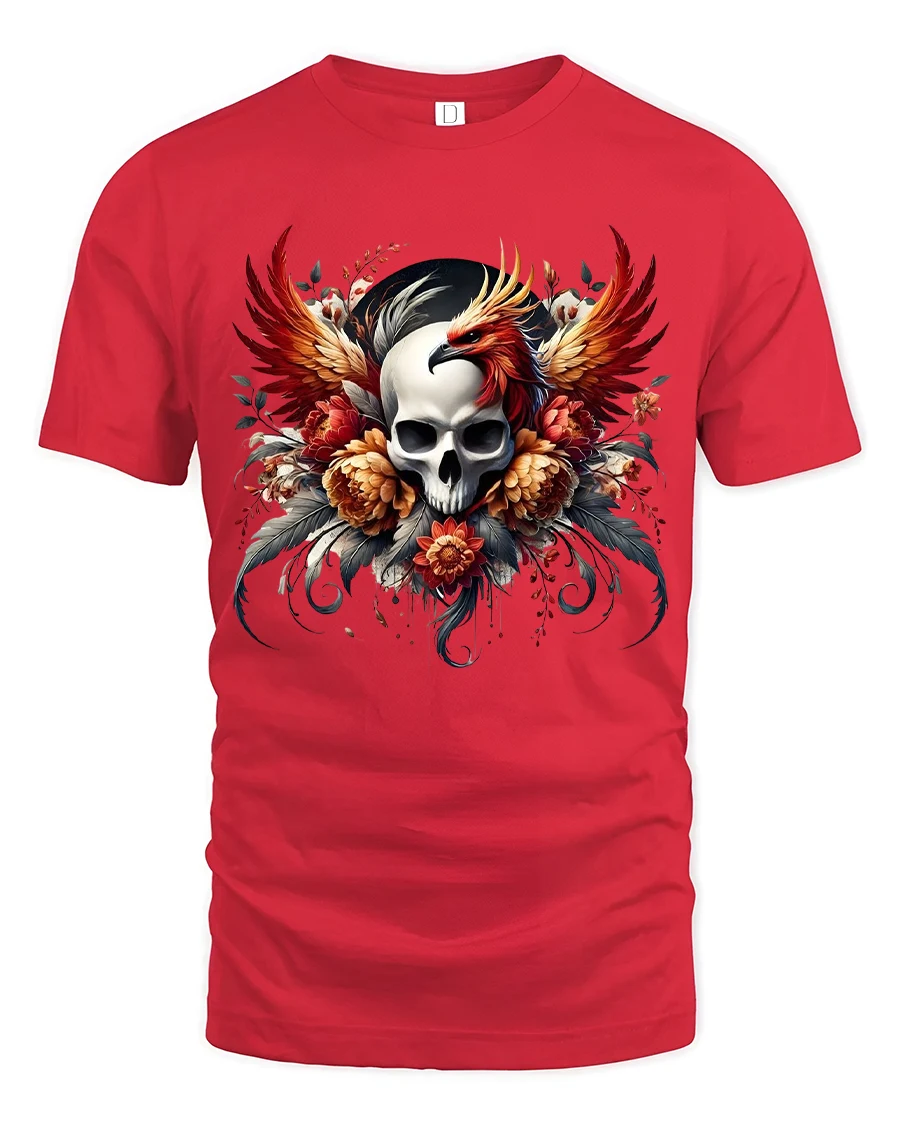 The Skull And Phoenix Fire Wings Art T Shirt Dark Fantasy Style is made for those who appreciate symbolic art bold visuals and fearless fashion.