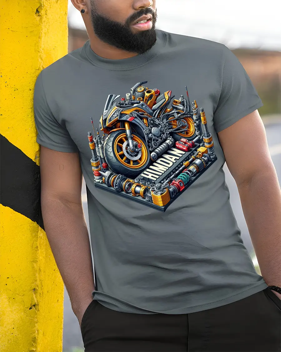 The Speed Machine Motorcycle Rider Graphic Printed Tee is designed for bikers, speed lovers, and anyone who lives for the thrill of the ride. Featuring a detailed motorcycle surrounded by mechanical engine parts, this shirt celebrates both power and precision. With its bold colors and striking design, it’s the perfect choice for showcasing your love for motorcycles.