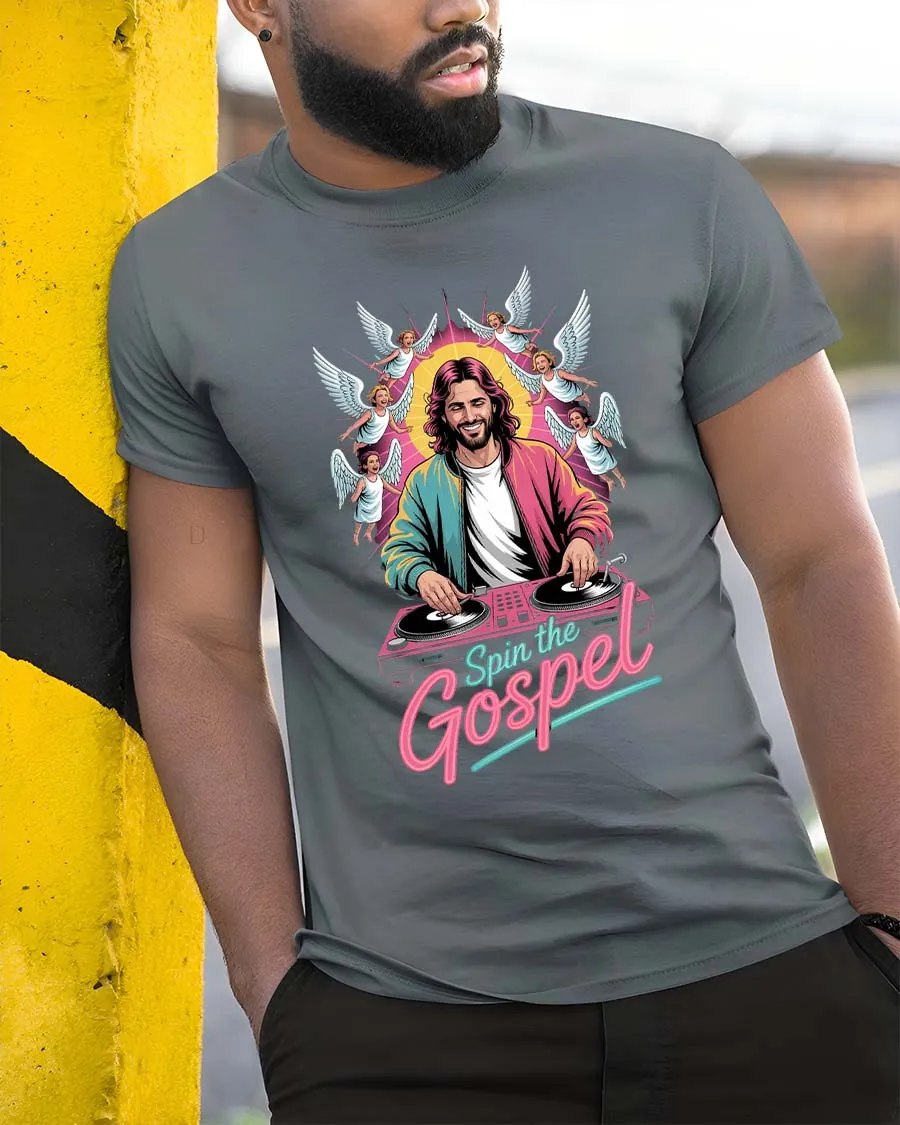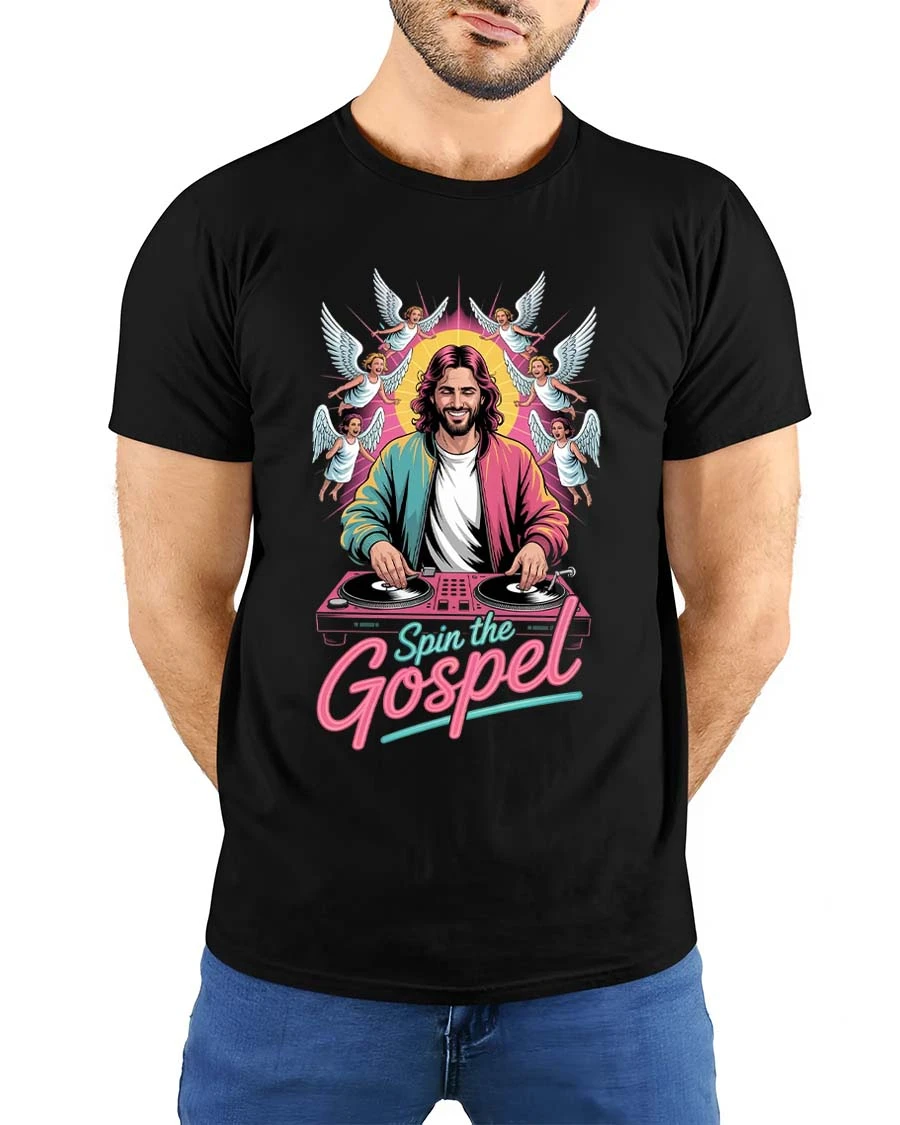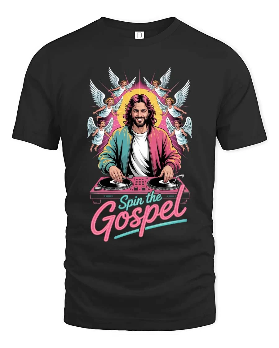 Spin The Gospel DJ Jesus Funny Christian Graphic T Shirt blends faith and music culture into a fun and eye catching design.