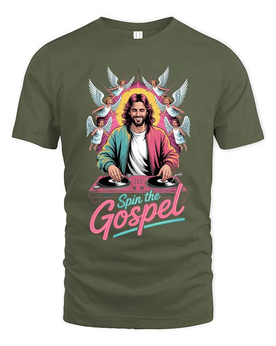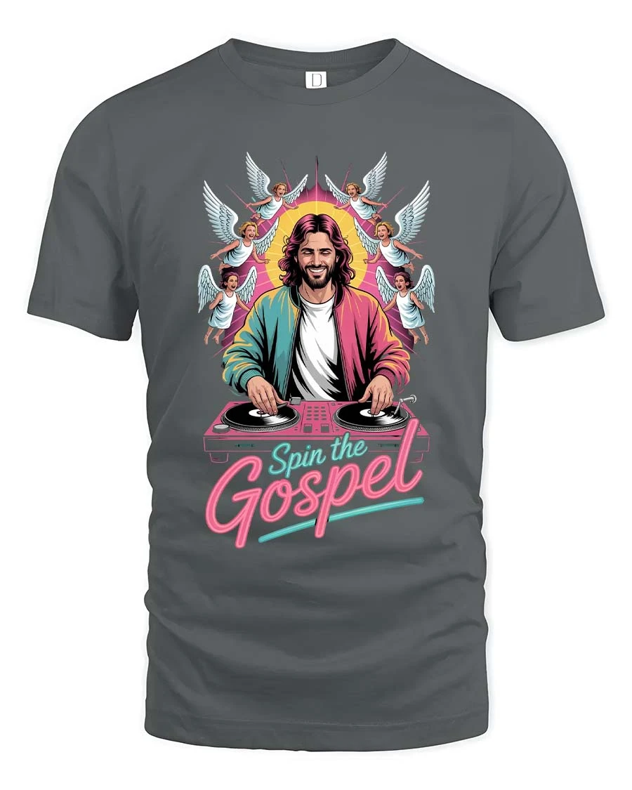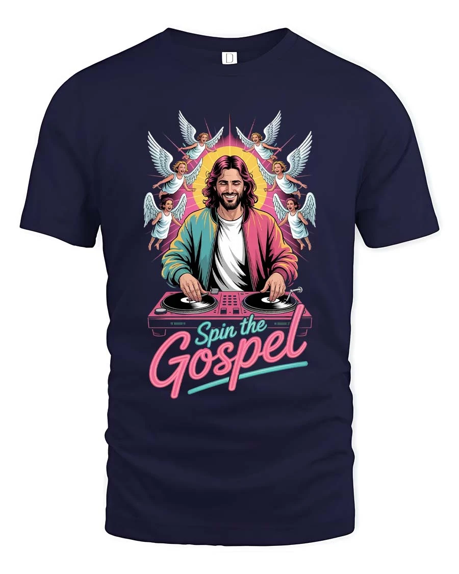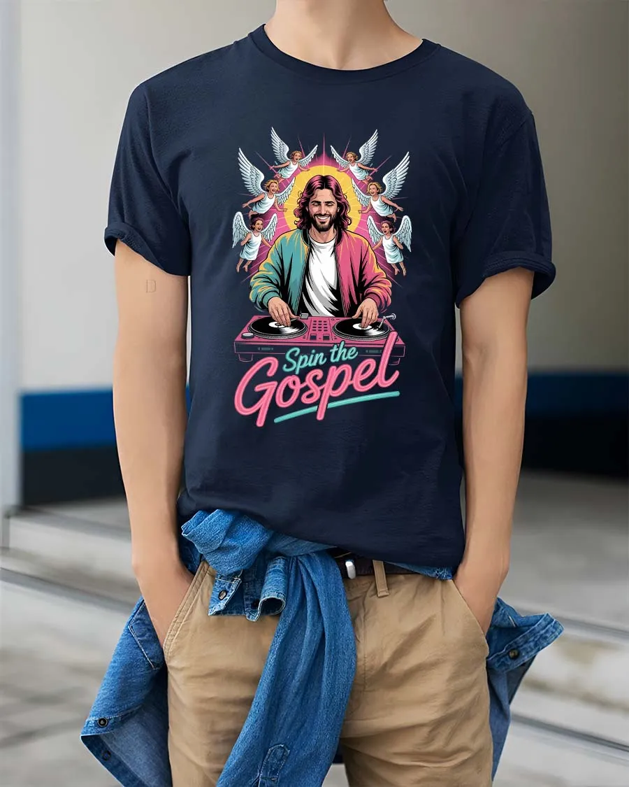 Spin The Gospel DJ Jesus Funny Christian Graphic T Shirt blends faith and music culture into a fun and eye catching design.