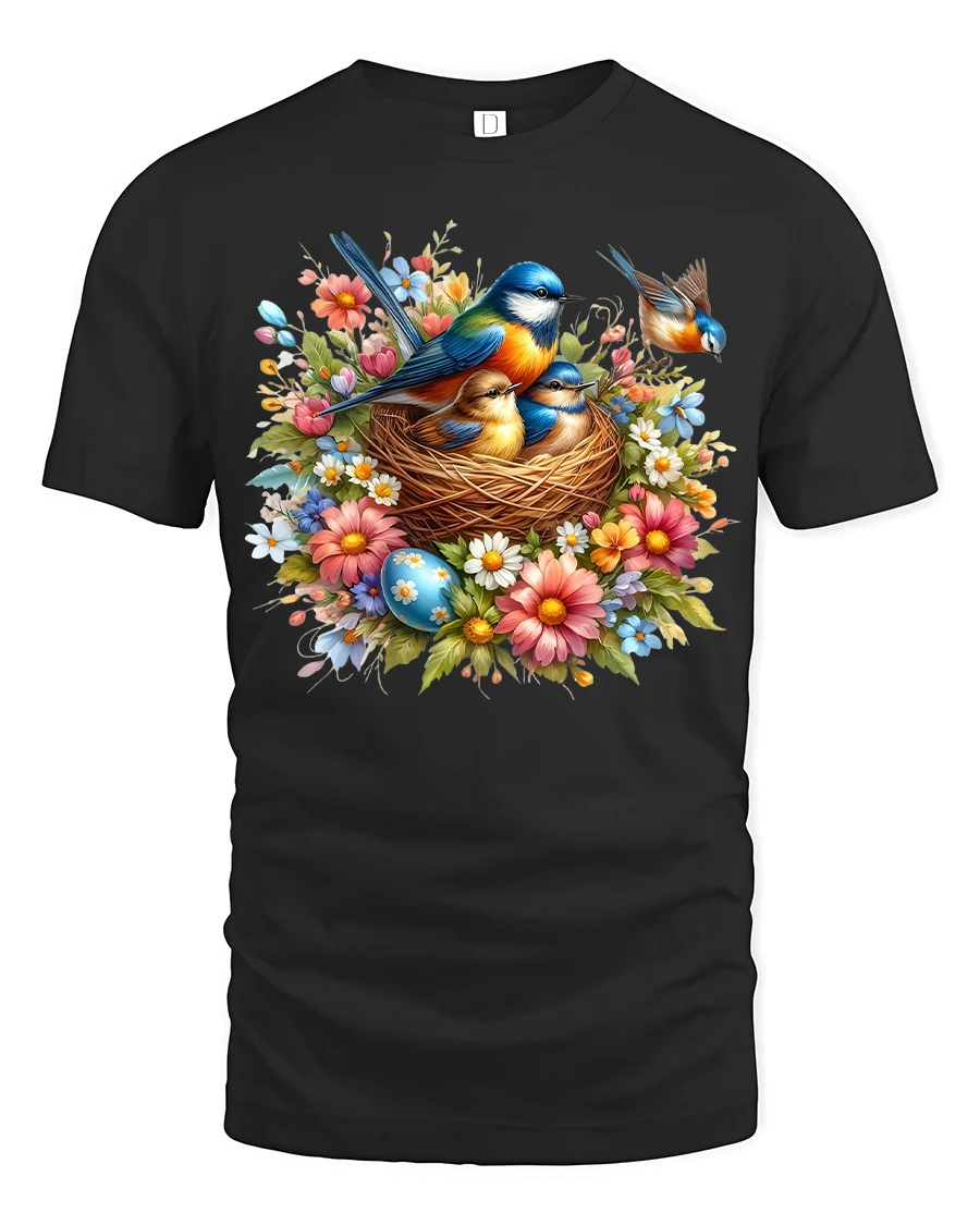 Be the first to review “Spring Birds in Nest Floral Nature Art T-Shirt”