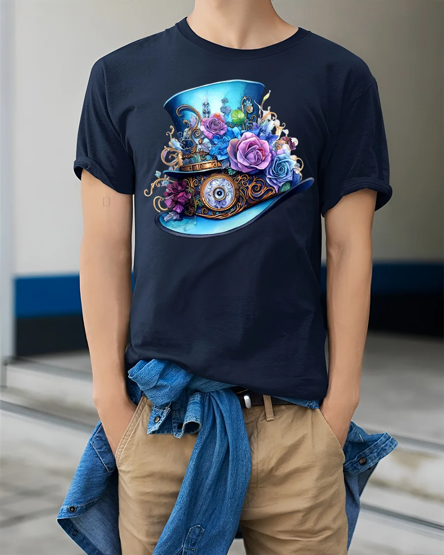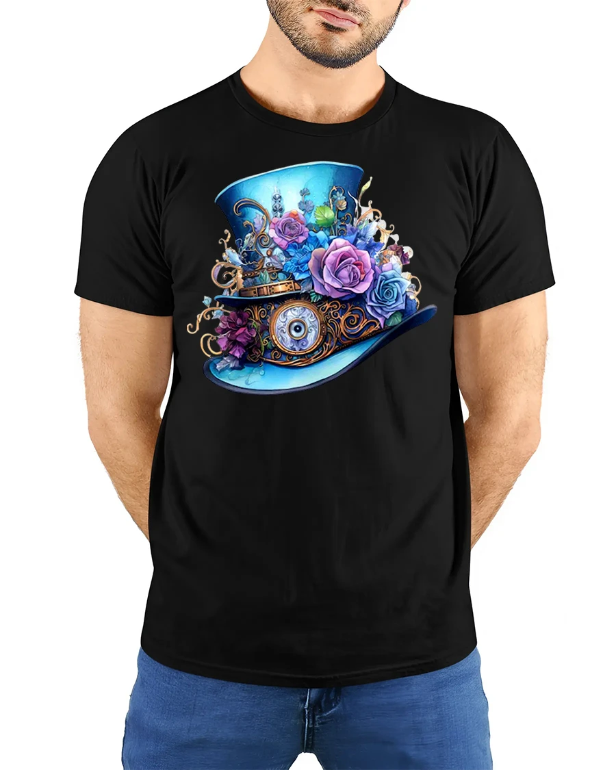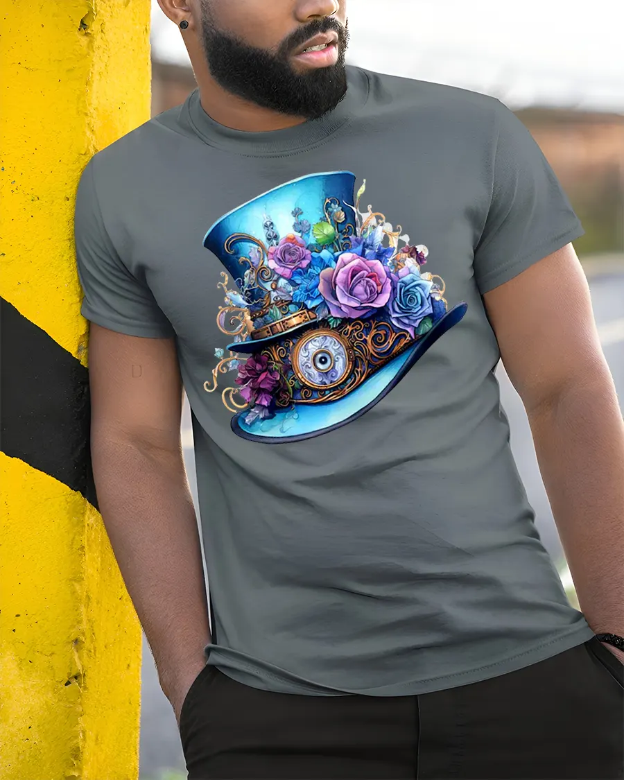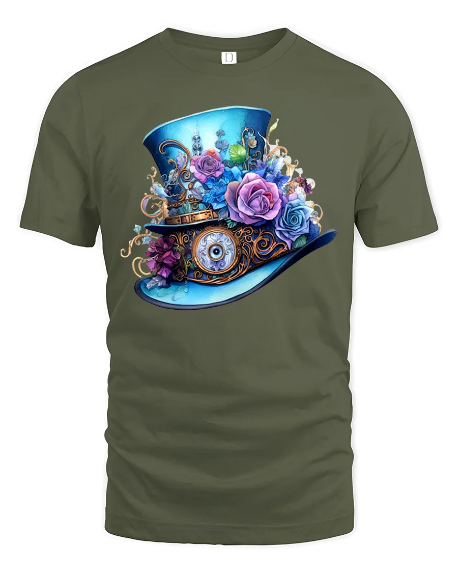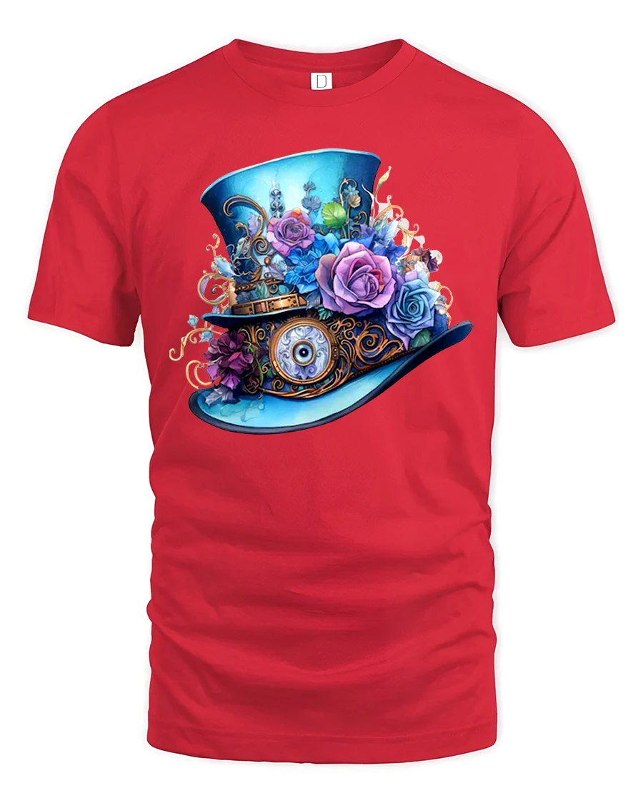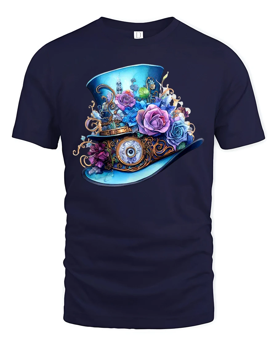Steampunk Floral Fantasy Top Hat Art Tee for Unique Style Lovers is a beautifully detailed graphic shirt created for fans of vintage aesthetics, floral artwork, and imaginative steampunk fashion. Featuring an ornate top hat decorated with gears, roses, metal accents, and whimsical mechanical elements, this design stands out with its brilliant colors and masterful illustration.