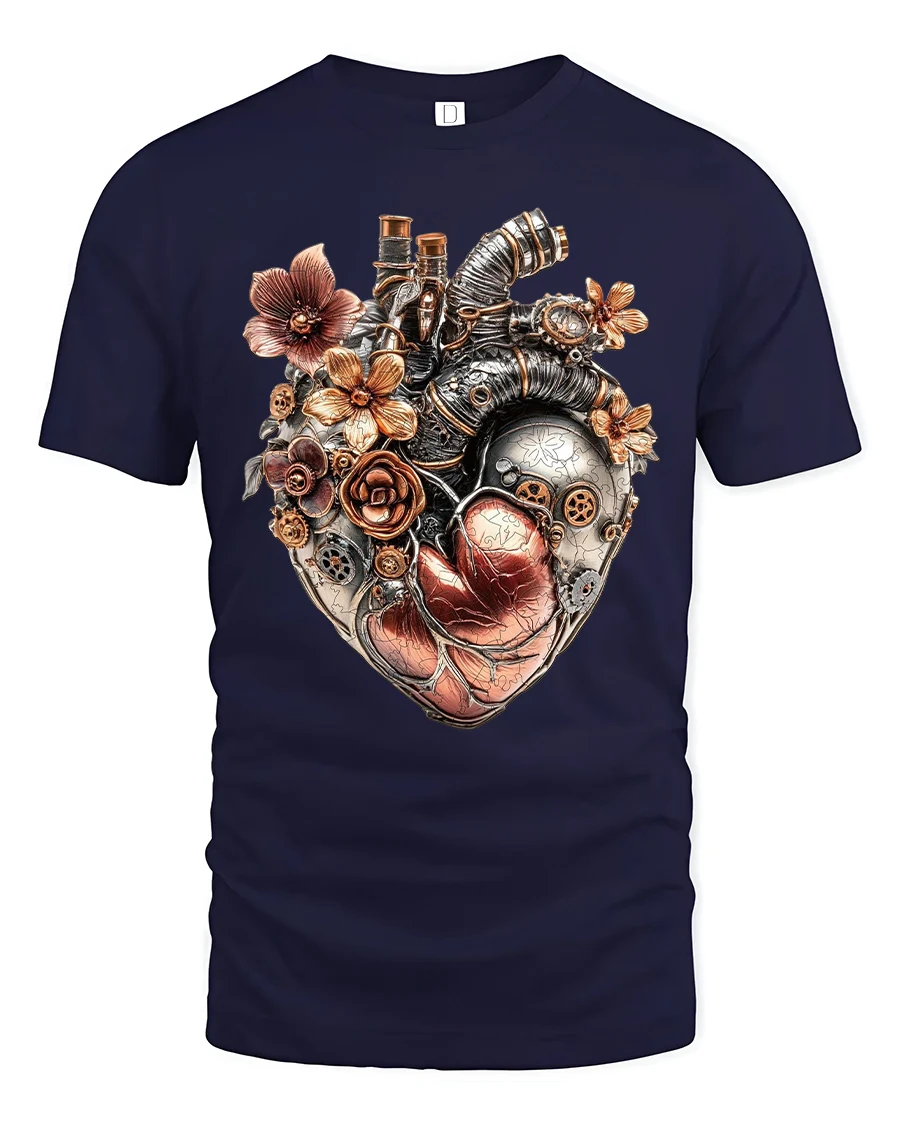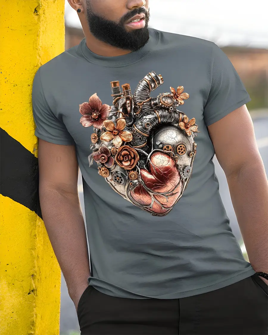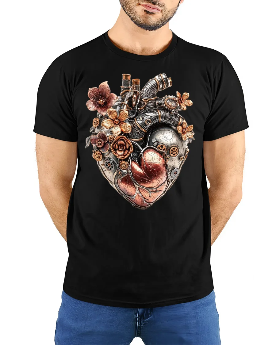 Crafted for comfort and style, this t-shirt brings together imaginative creativity and everyday wearability. The detailed floral accents softens the raw metallic look of the mechanical heart, making this tee a meaningful choice for gifting or personal expression. Whether you wear it to conventions, casual days out, or artistic gatherings, it’s sure to draw compliments.