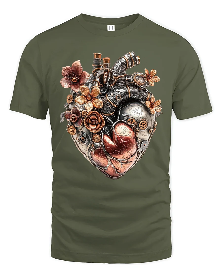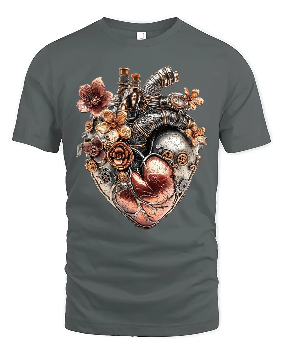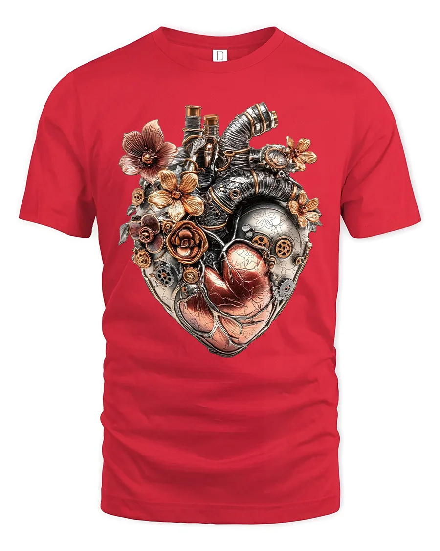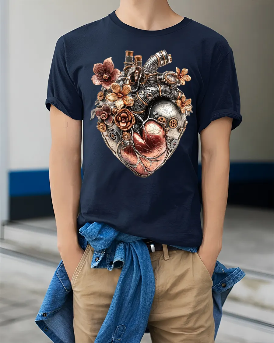 Crafted for comfort and style, this t-shirt brings together imaginative creativity and everyday wearability. The detailed floral accents softens the raw metallic look of the mechanical heart, making this tee a meaningful choice for gifting or personal expression. Whether you wear it to conventions, casual days out, or artistic gatherings, it’s sure to draw compliments.
