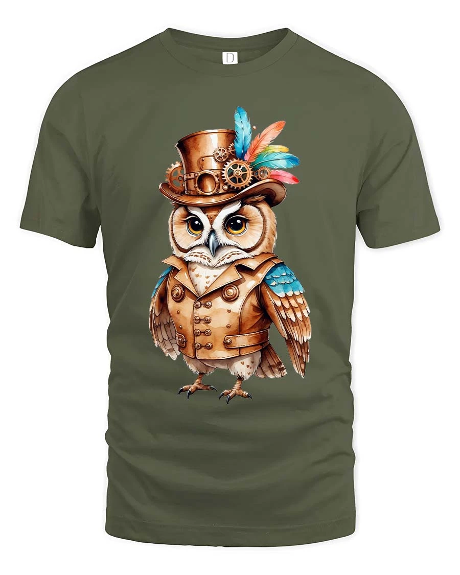 Steampunk Owl Graphic T Shirt Vintage Mechanical Style Art blends imaginative fantasy with classic vintage inspiration.