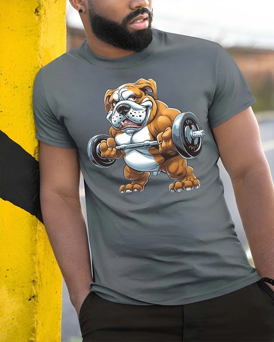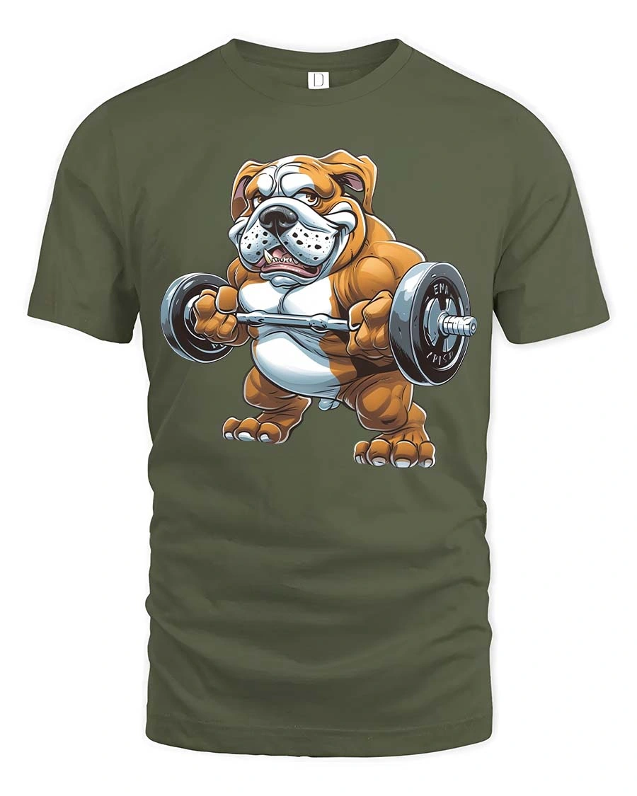 Strong Bulldog Gym Graphic T Shirt Funny Fitness Motivation combines humor and strength in a bold expressive design.