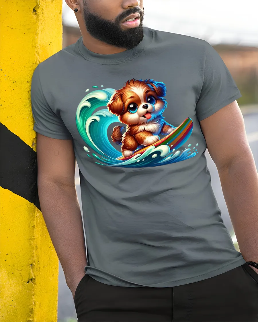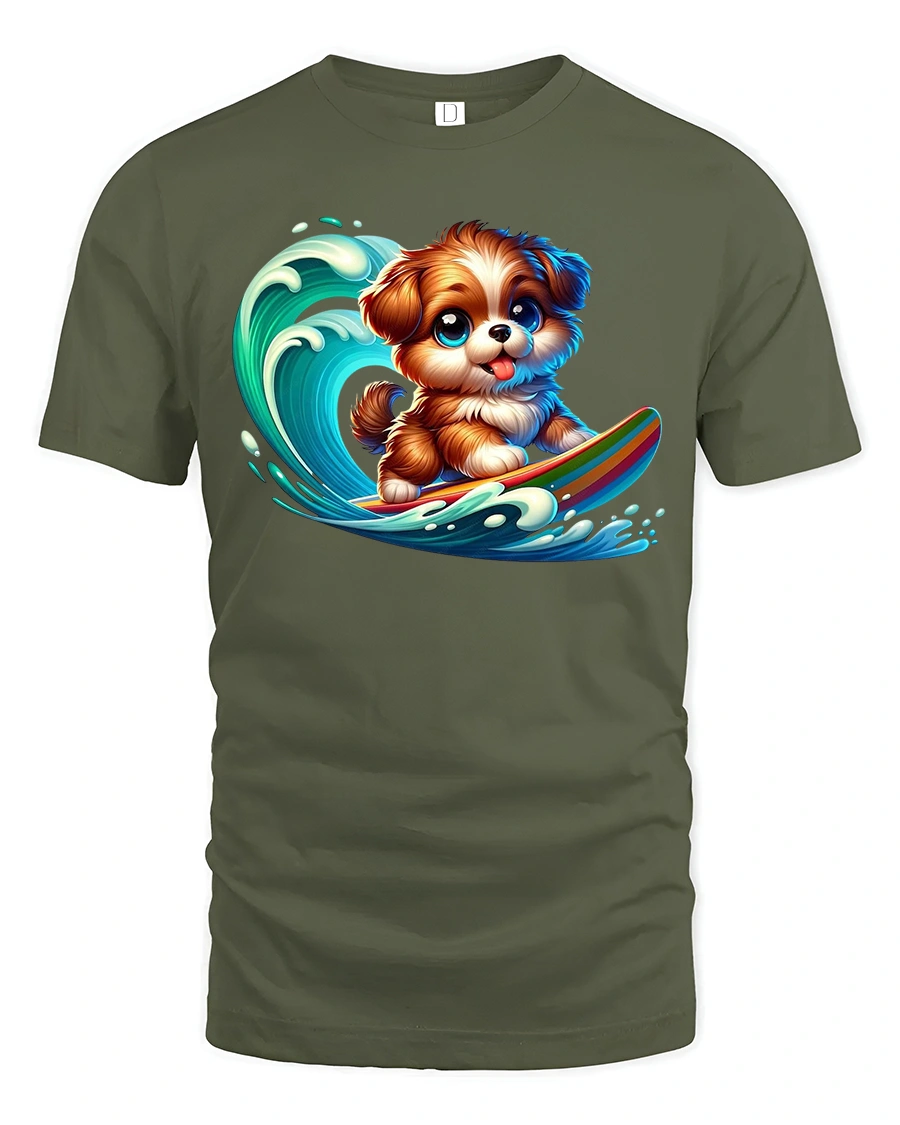 Whether you’re a dog lover, surf enthusiast, or just someone who enjoys cheerful art, this Surfing Puppy T-Shirt makes a great choice.
