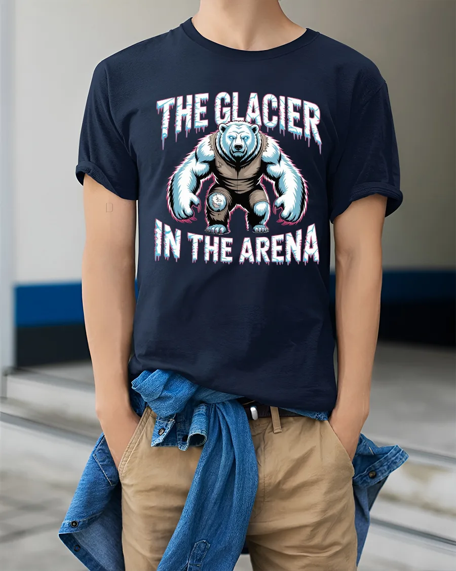 The Glacier In The Arena Ice Bear Warrior Graphic T Shirt delivers an intense and commanding visual inspired by raw strength and frozen dominance. Featuring a muscular polar bear warrior standing firm in an arena setting, this design captures the spirit of power, resilience, and icy determination. The frosted details and bold typography create a striking contrast that instantly grabs attention.