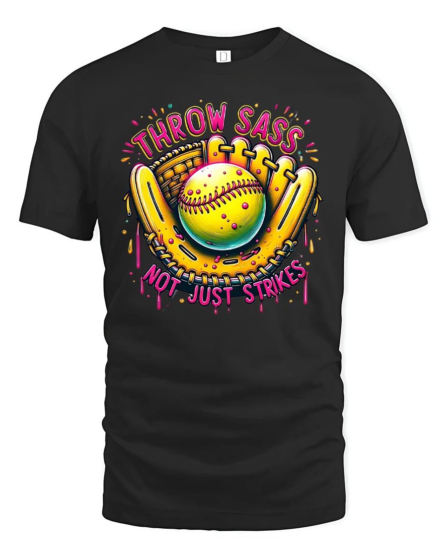 Whether you’re shopping for yourself or looking for the perfect softball player gift, the Throw Sass Not Strikes Softball Funny Quote Tee makes a great addition to any athlete’s wardrobe. Bring sass, energy, and a splash of color to your next game or outing with this fun softball tee.