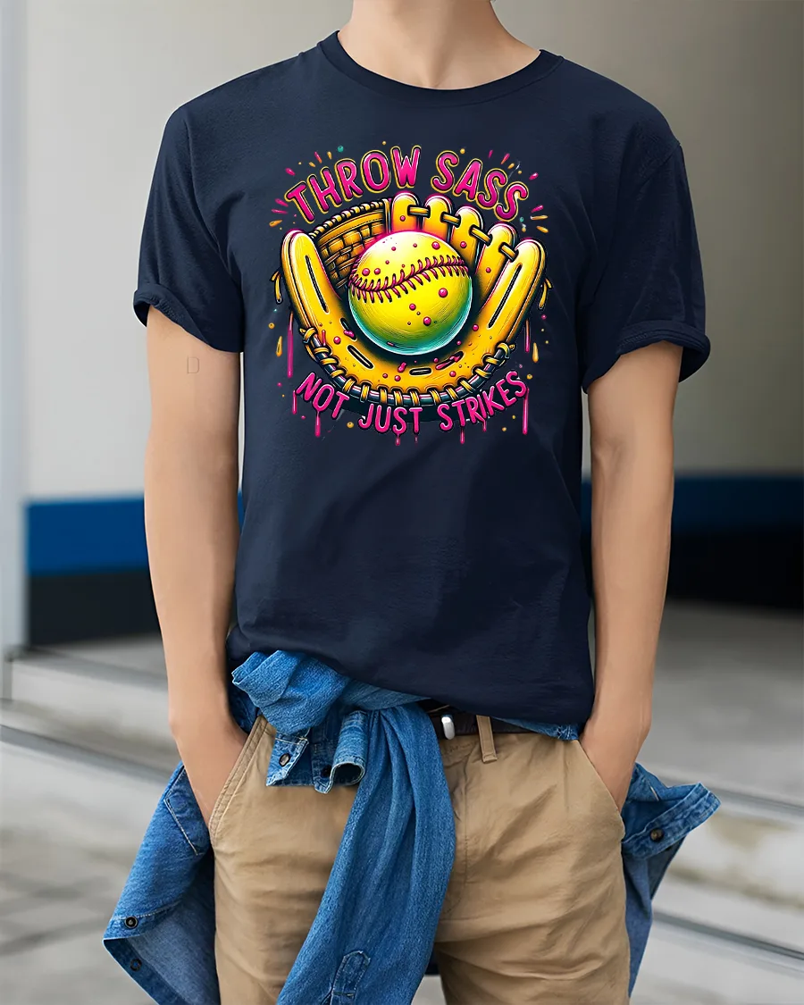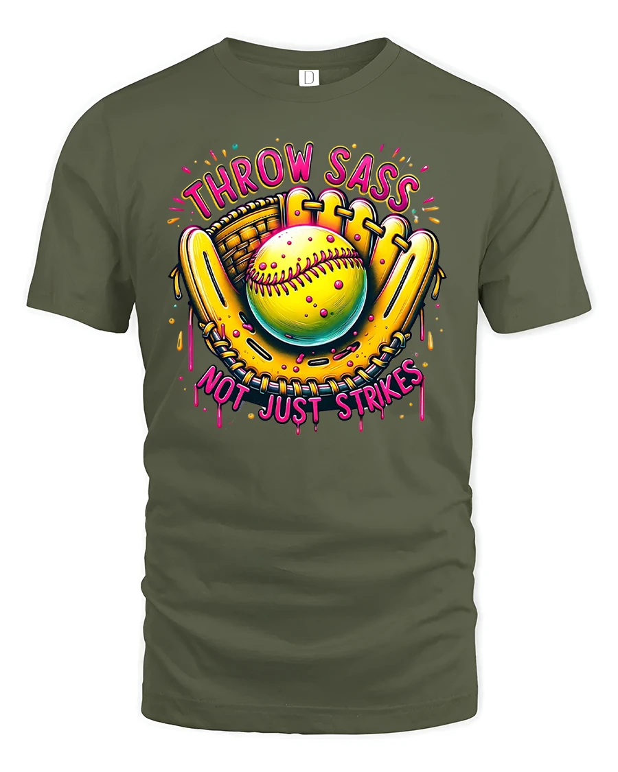 Add some bold attitude to your game-day style with the Throw Sass Not Strikes Softball Funny Quote Tee. Featuring a vibrant neon design with a softball in a catcher’s mitt and the playful phrase “Throw Sass Not Just Strikes,” this tee brings a mix of humor and confidence to every swing and pitch. It’s the perfect choice for players who love showing personality both on and off the field.
