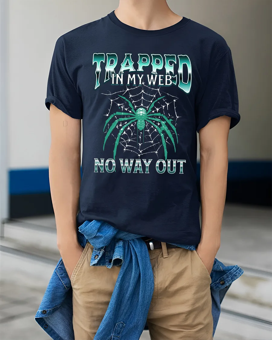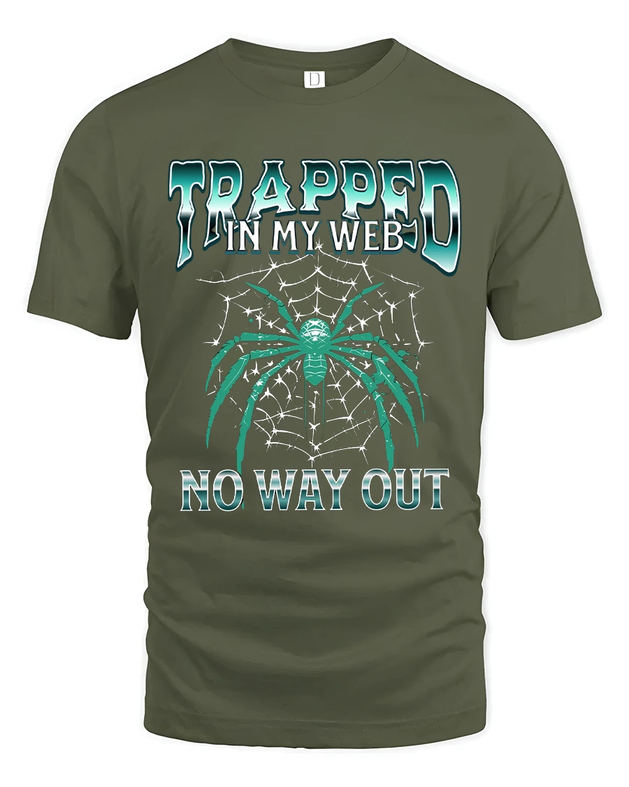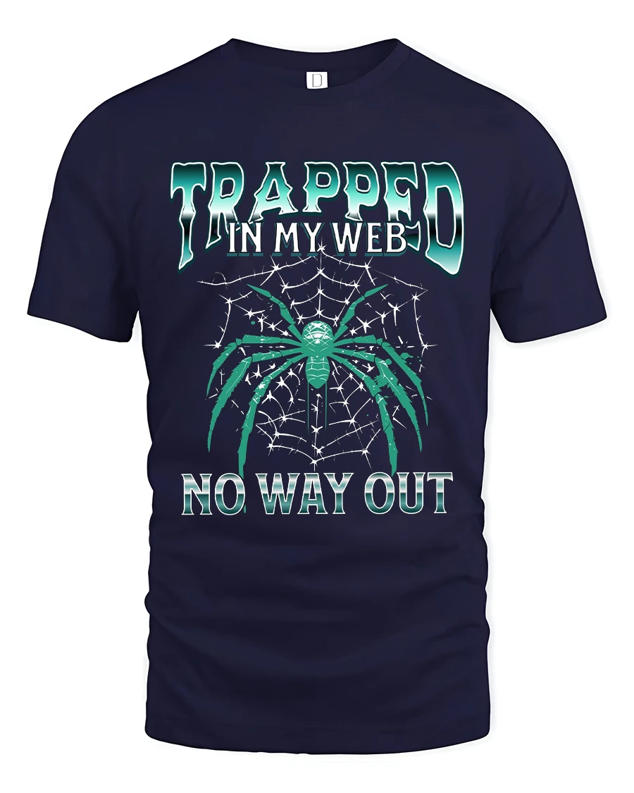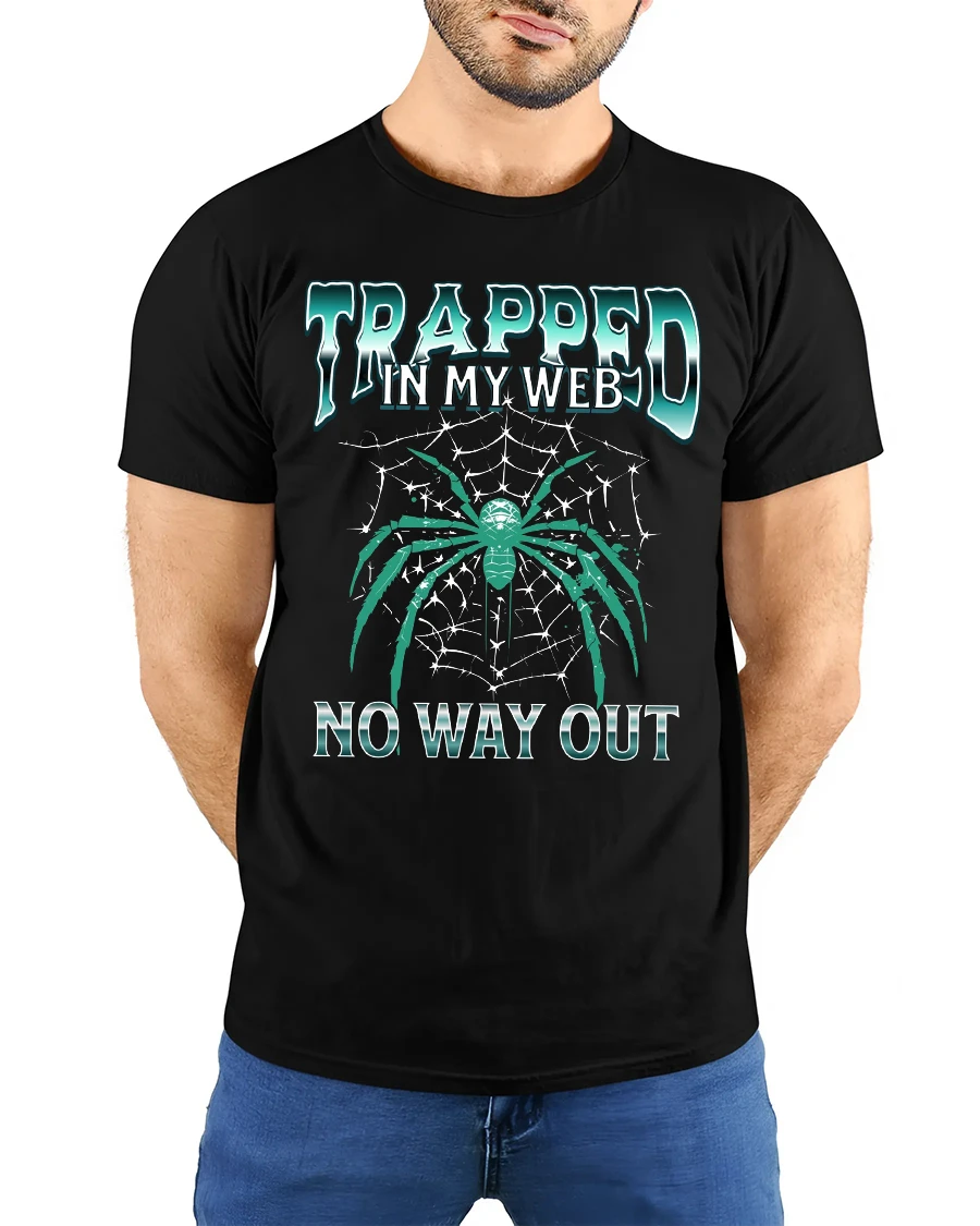 Trapped In My Web Spider Graphic T Shirt delivers a chilling visual that instantly commands attention.