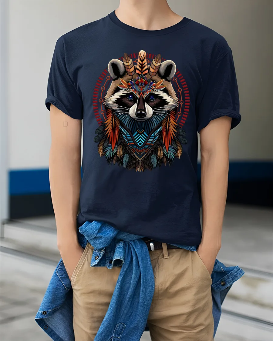 Stand out with this raccoon tribal t-shirt that celebrates individuality and connection to nature.