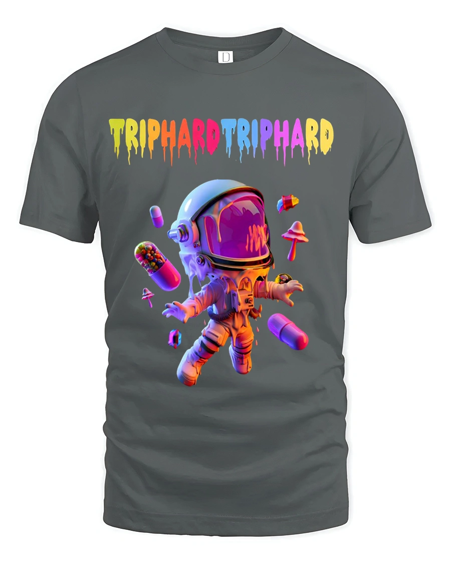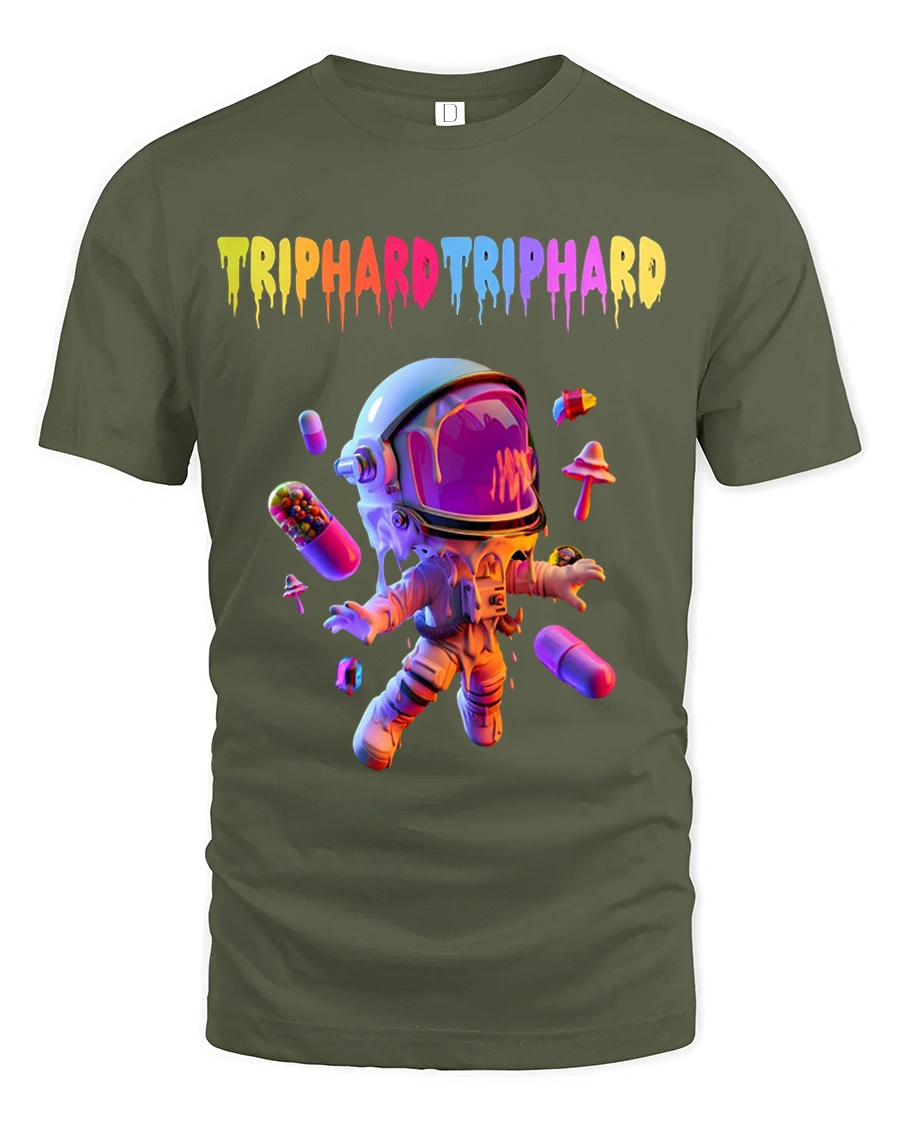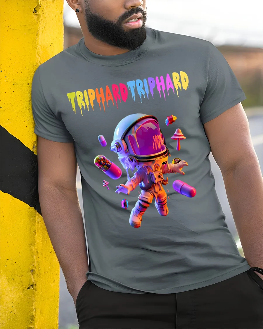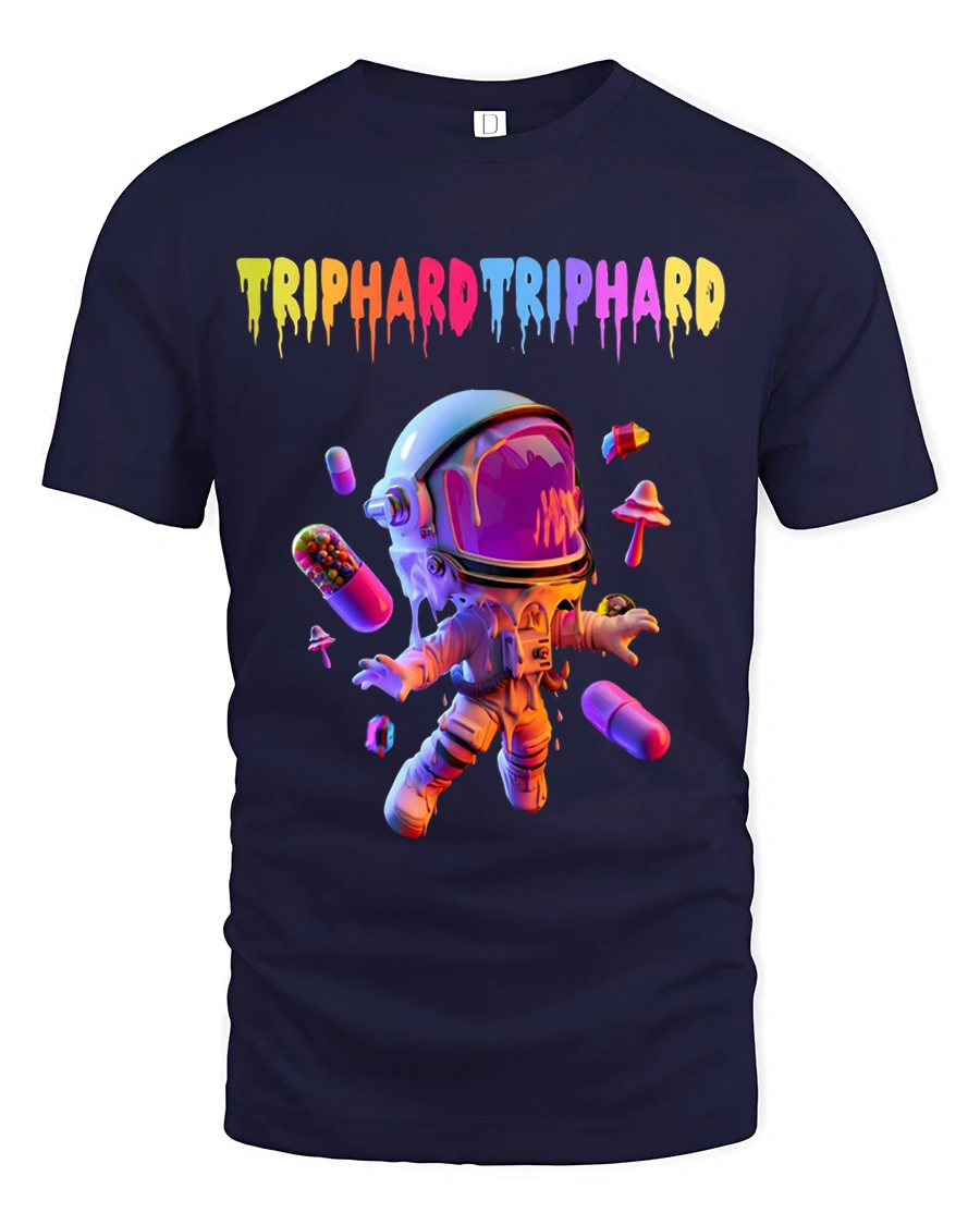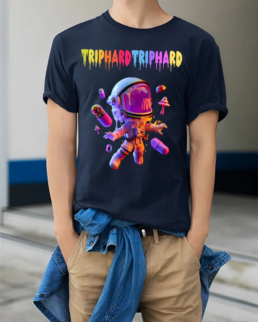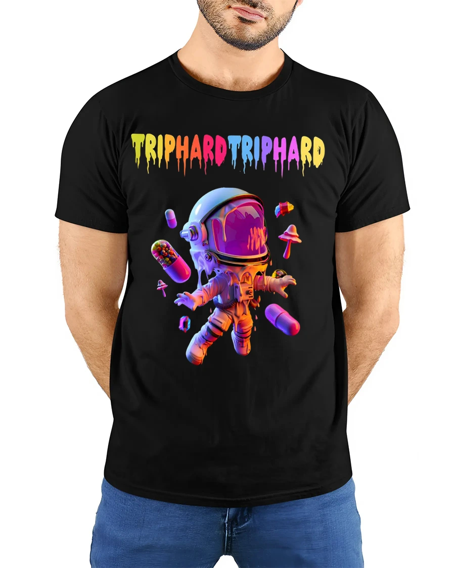 Trip Hard Astronaut Psychedelic Space Graphic T Shirt delivers a bold fusion of cosmic adventure and vibrant street style. Featuring a floating astronaut surrounded by colorful capsules and surreal space elements, this eye catching design captures the thrill of exploring new dimensions. The dripping rainbow typography and neon tones create an energetic look that stands out instantly.