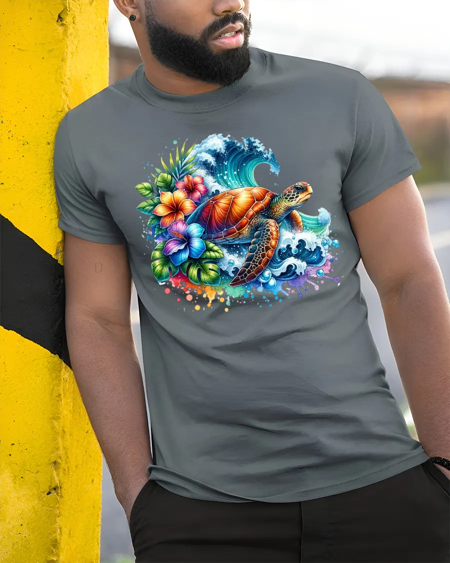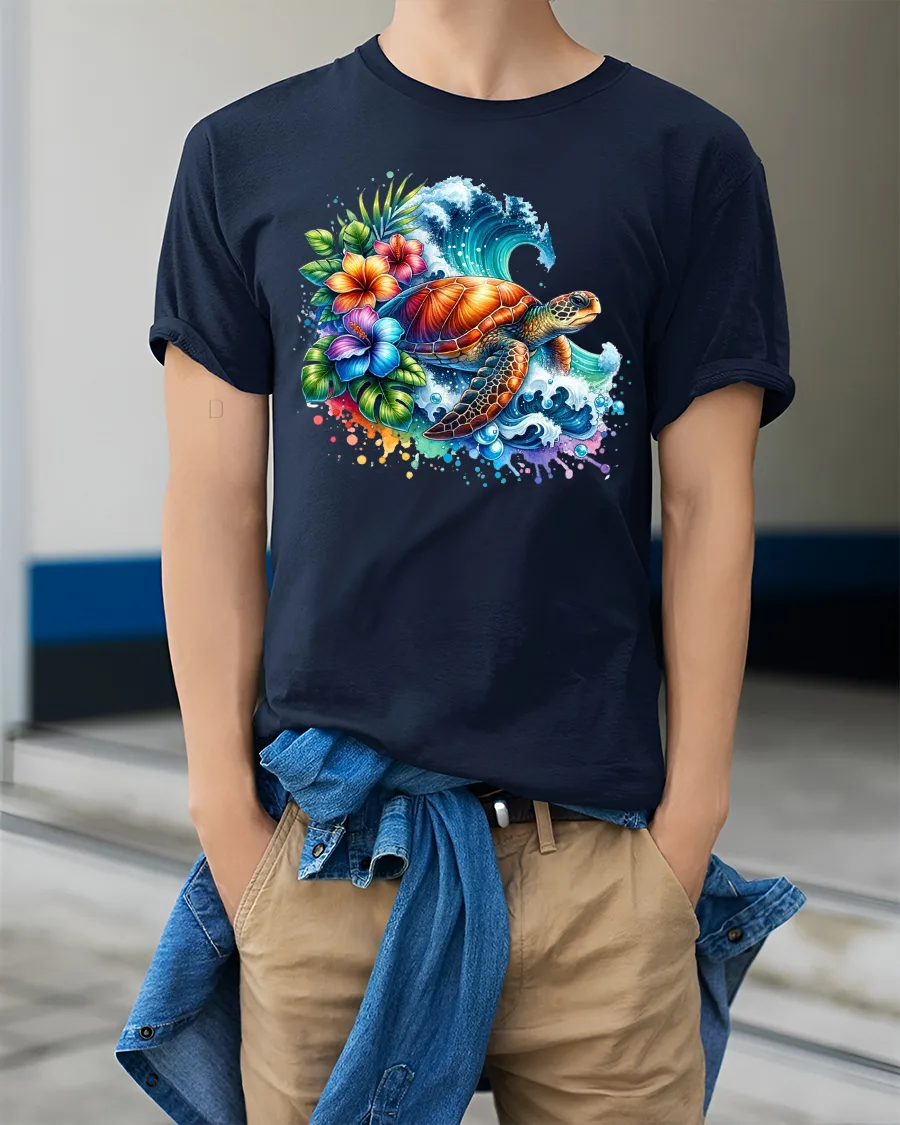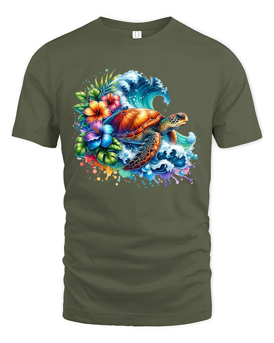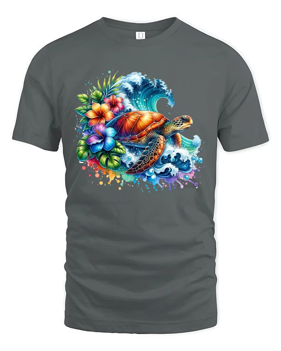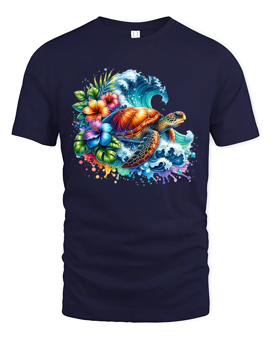 Bring the beauty of the tropics wherever you go with this Tropical Sea Turtle T-Shirt Ocean Wave Floral Art. Featuring a vibrant sea turtle swimming through crashing waves surrounded by lush hibiscus flowers, this design captures the spirit of summer, the ocean, and adventure. Perfect for beach lovers, ocean enthusiasts, or anyone who enjoys colorful and artistic tees.