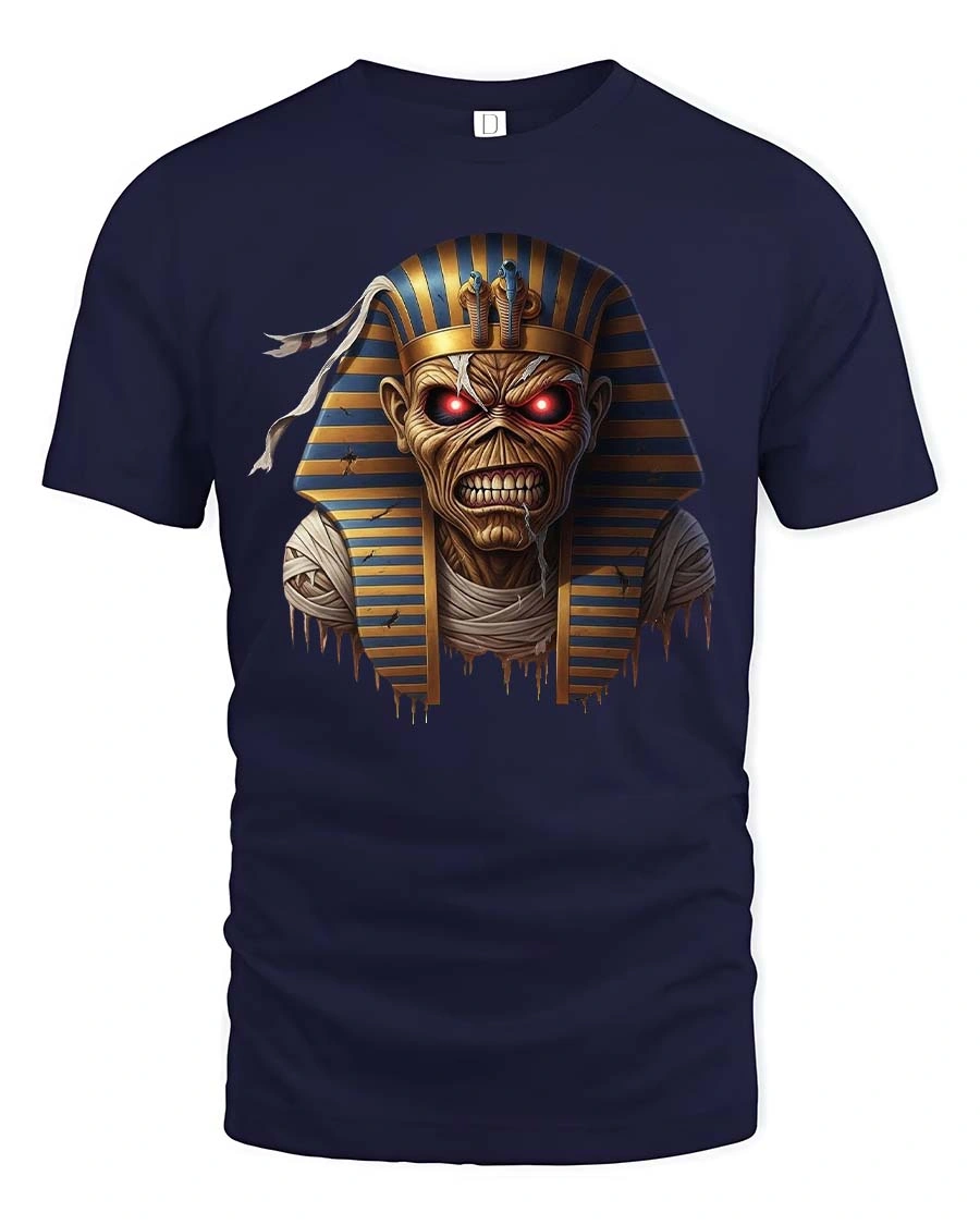 Unleash ancient terror with the Undead Pharaoh Mummy Horror Graphic T Shirt. This striking design features a fierce pharaoh mummy with glowing red eyes and cracked ancient wrappings, inspired by the dark legends of ancient Egypt. The detailed artwork captures the haunting presence of a cursed ruler rising from the tomb, blending historical mystique with bold horror style that instantly commands attention.