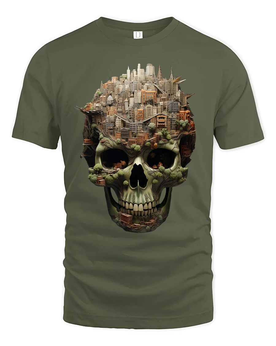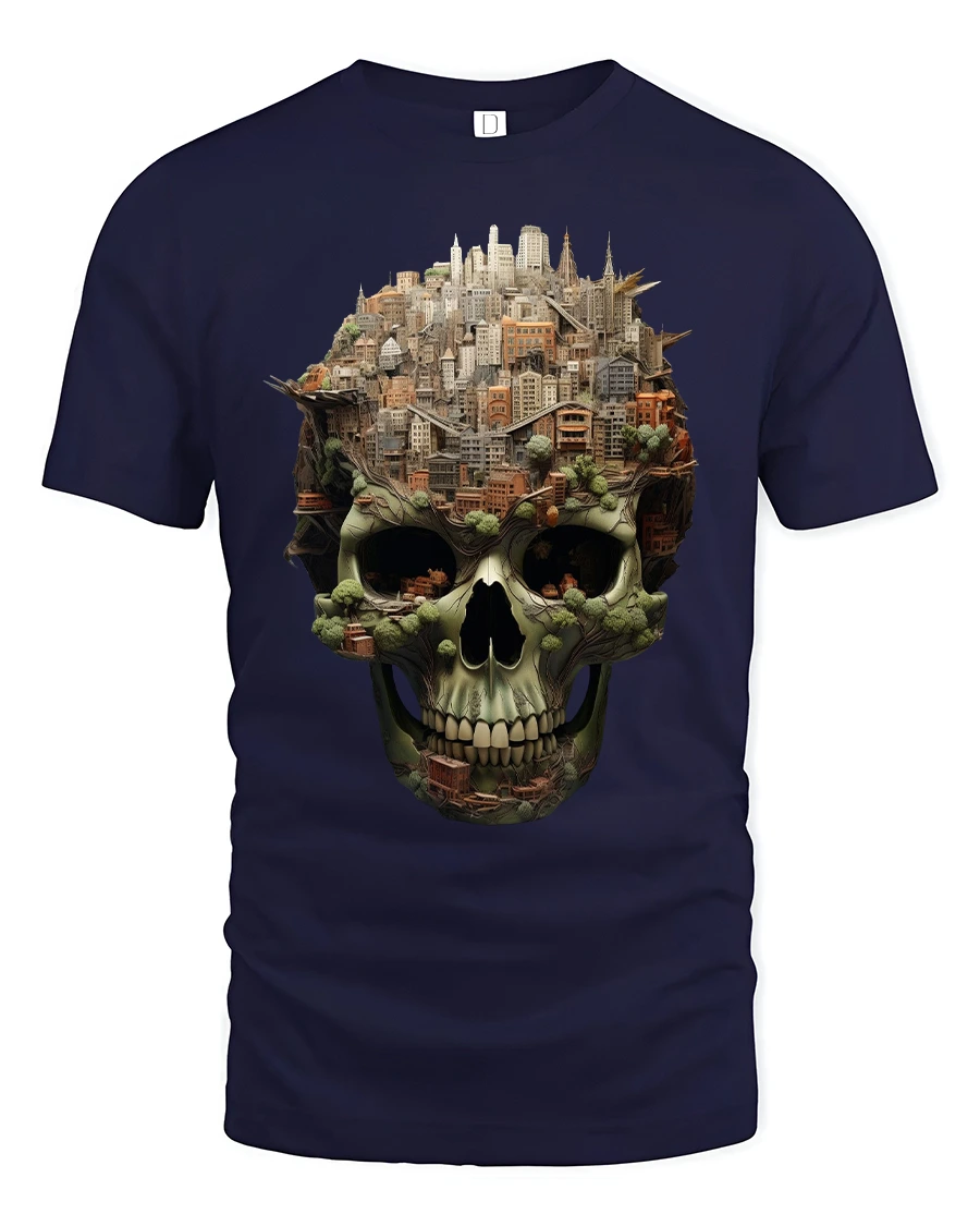 Urban City Skull Landscape Art Bold Street Style Graphic Tee blends modern architecture with edgy skull aesthetics for a design that truly stands out. Featuring an intricately detailed cityscape rising from the top of a skull, this tee captures the fusion of urban life, creativity, and dark artistic flair. Every building, structure, and tree is illustrated with stunning depth, creating a mesmerizing image that draws the eye and sparks conversation.
