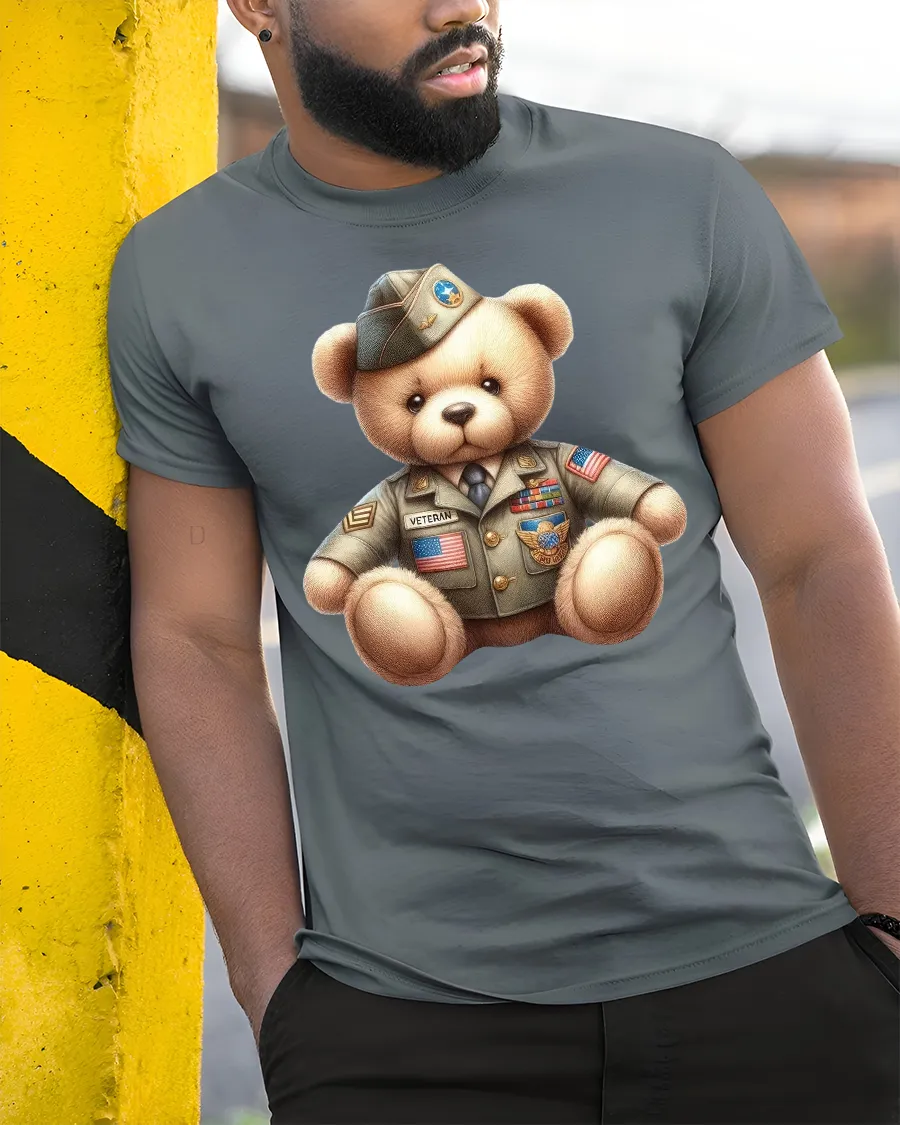 Crafted for comfort and everyday wear, this veteran bear t-shirt is ideal for military families, proud veterans, or anyone who wants a unique way to express patriotism. Its eye-catching graphic pairs well with jeans, jackets, and casual outfits, making it a great addition to any wardrobe.