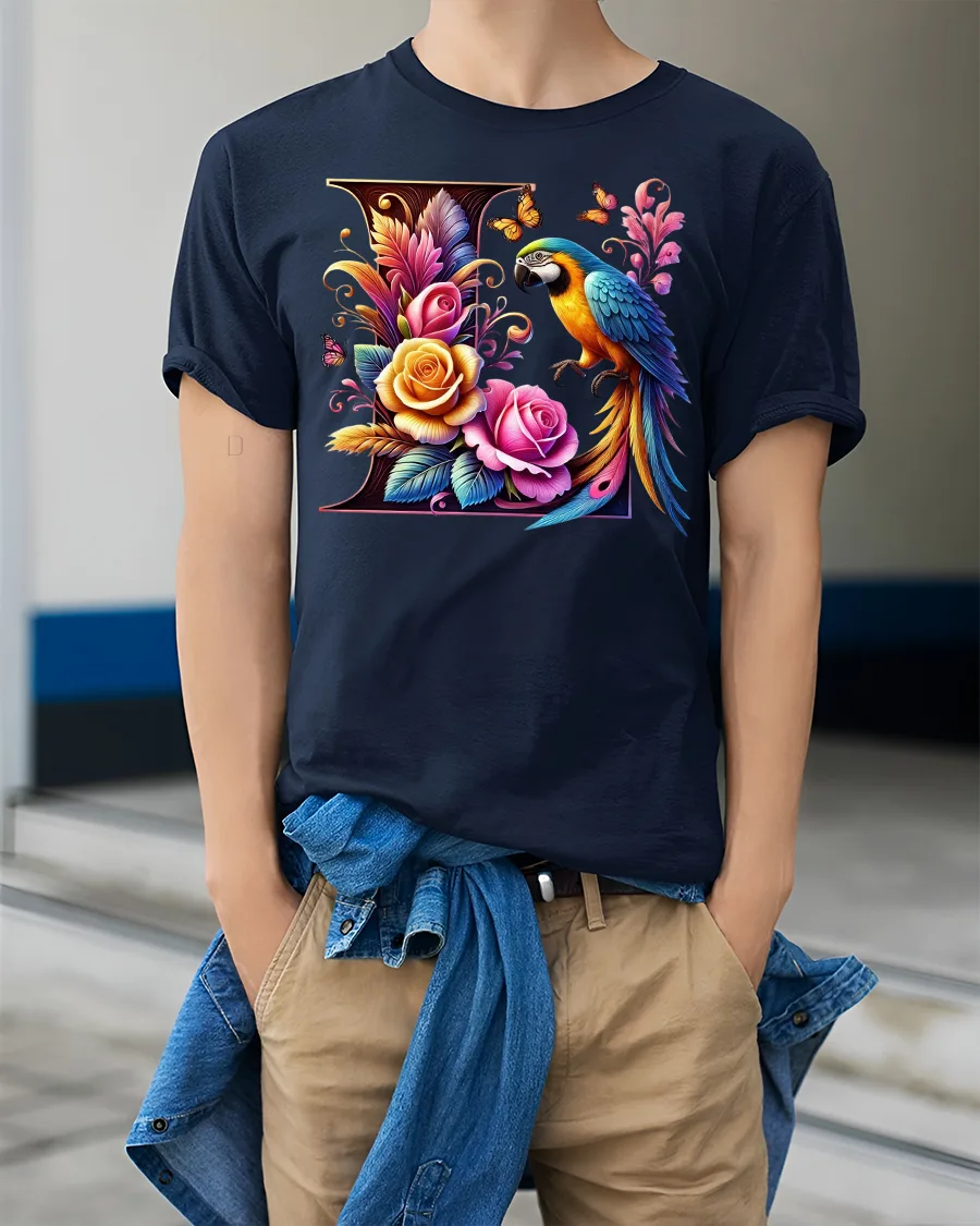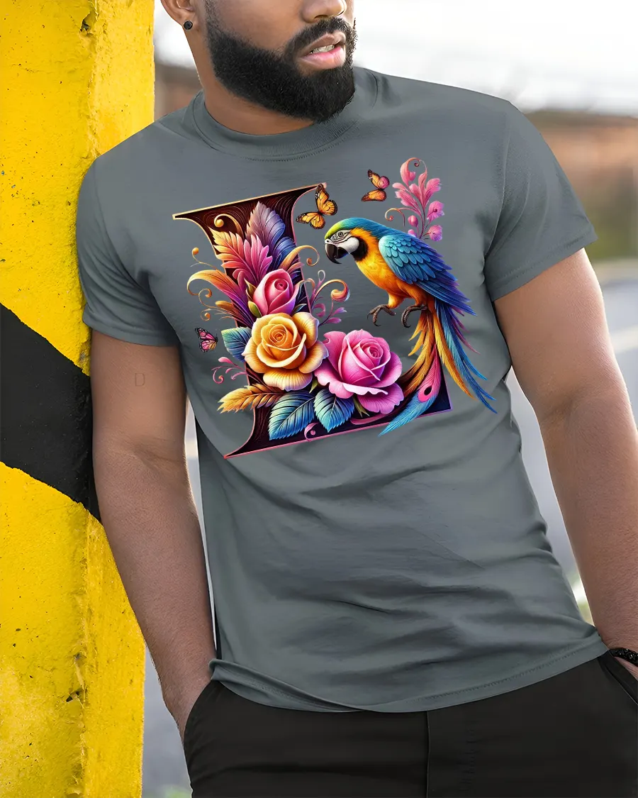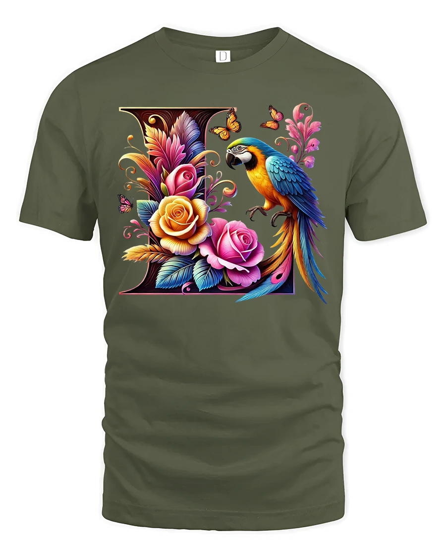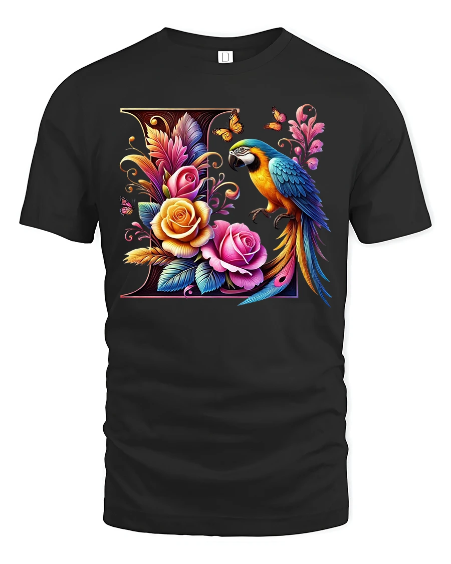 The Vibrant Floral Parrot Monogram T-Shirt with Colorful Letter Art also makes a thoughtful gift for birthdays, holidays, or anyone who enjoys expressive, stylish apparel. Designed to draw attention and spark compliments, this t-shirt is a must-have for those who want to stand out with beautiful and meaningful graphic wear.