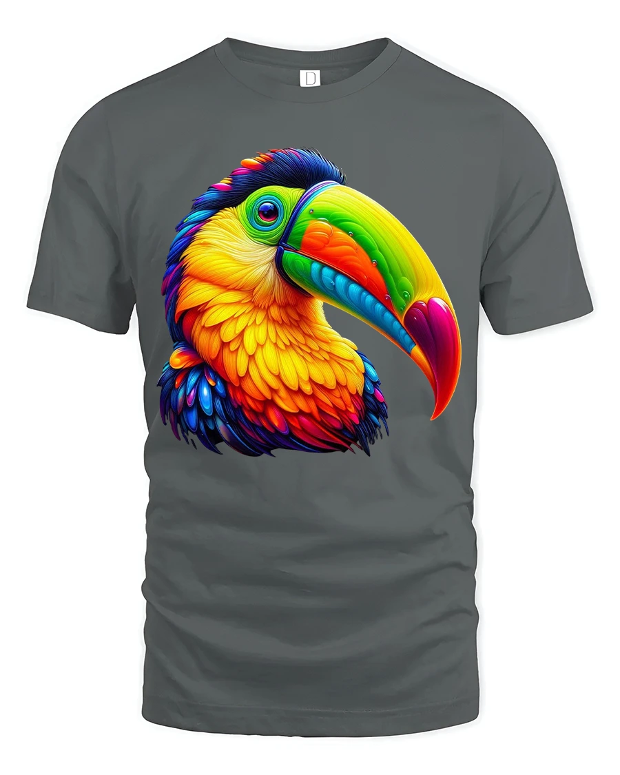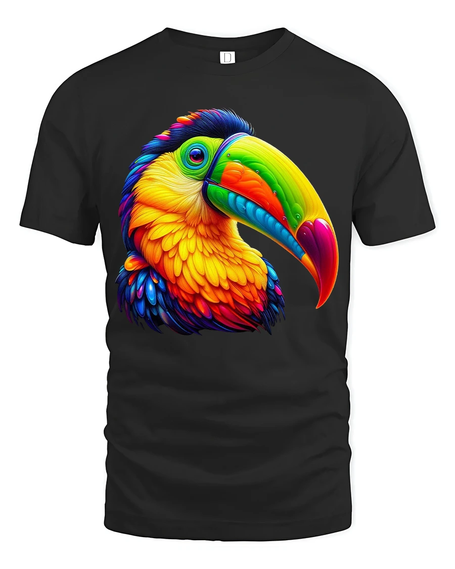 Vibrant Rainbow Toucan Tee with Bold Tropical Bird Artwork brings stunning color and tropical energy to your wardrobe. The design features a beautifully detailed toucan with a radiant rainbow beak and richly layered feathers that blend vivid hues of blue, orange, green and red. Every color pop and feather detail gives this graphic a lively, eye catching look that embodies the exotic beauty of tropical wildlife.