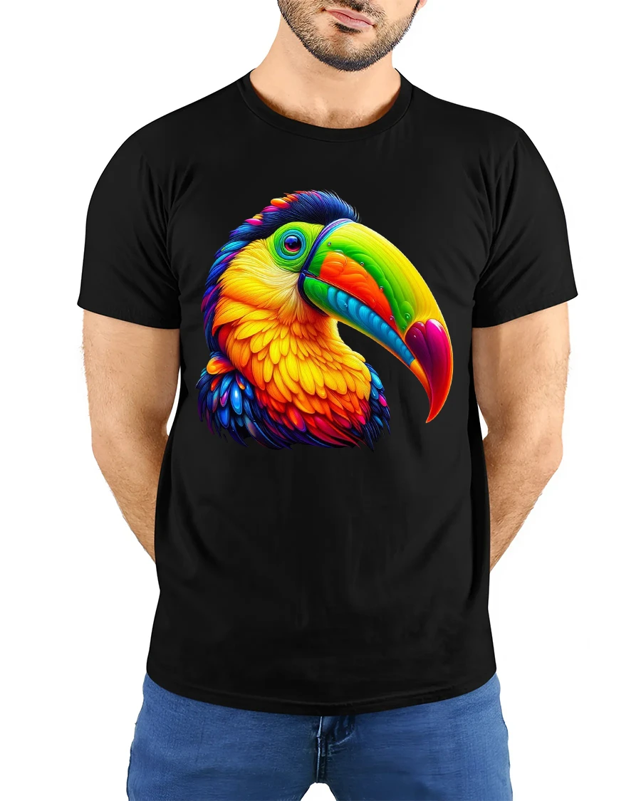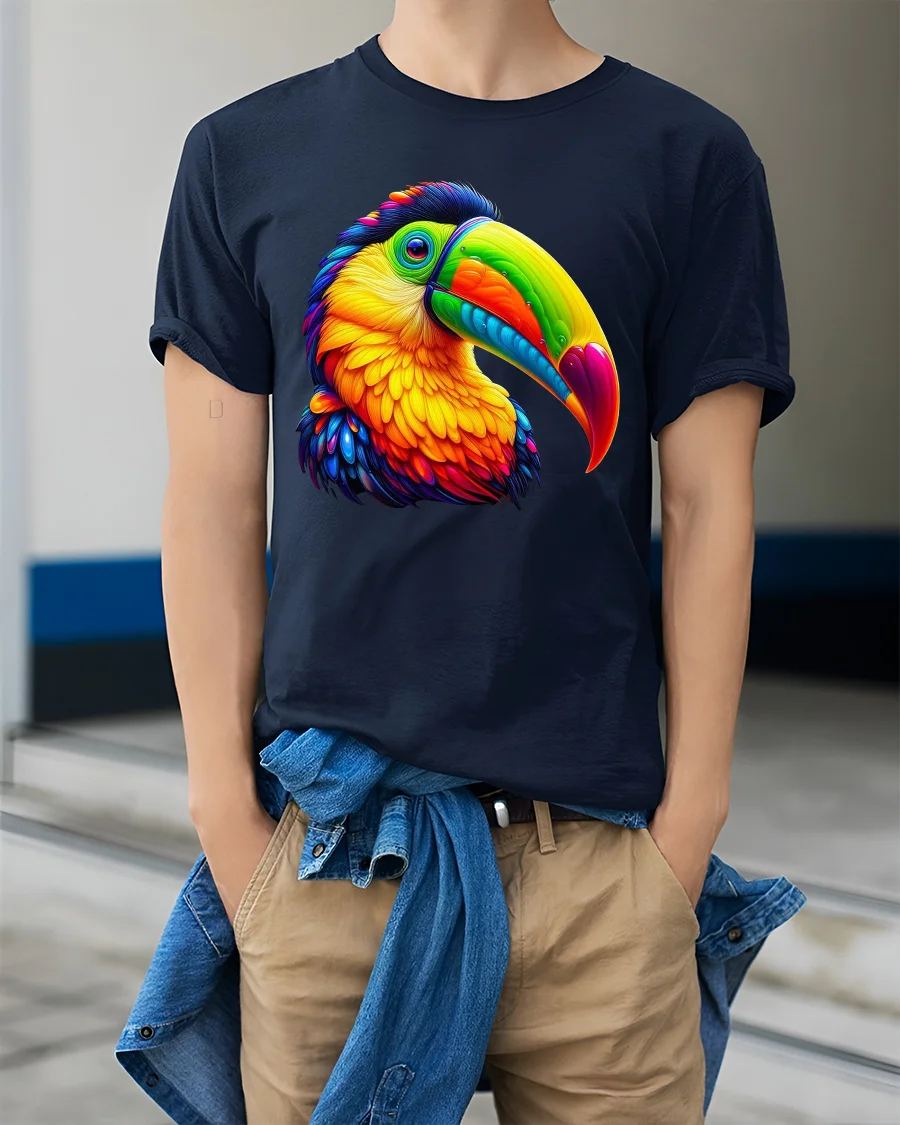 The Vibrant Rainbow Toucan Tee with Bold Tropical Bird Artwork pairs effortlessly with casual jeans, summer shorts or layered streetwear styles. Its tropical flair and vivid artistic design make it a standout piece that spreads brightness, creativity and adventure wherever you go.