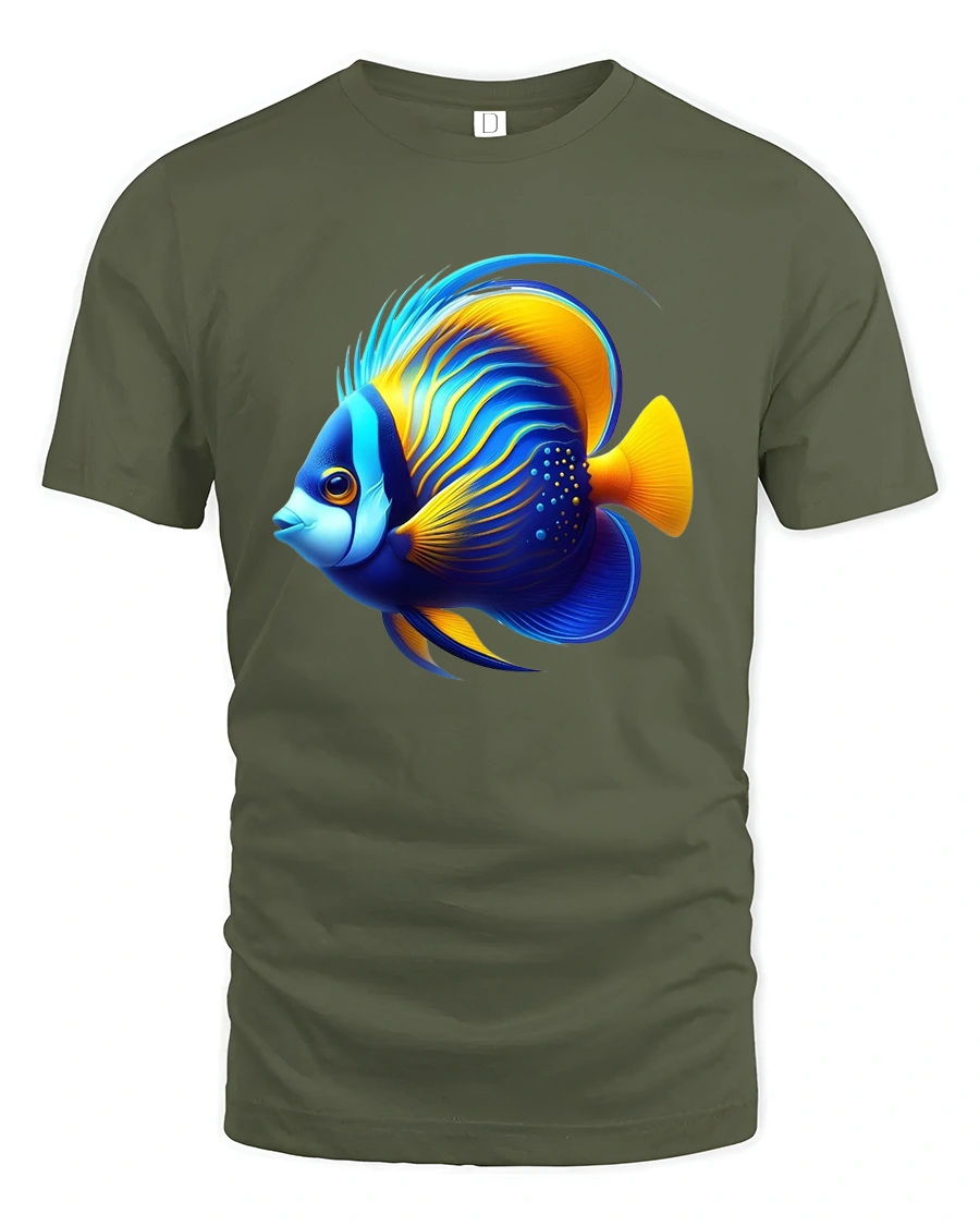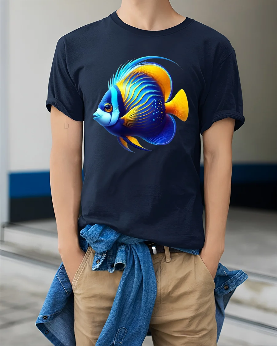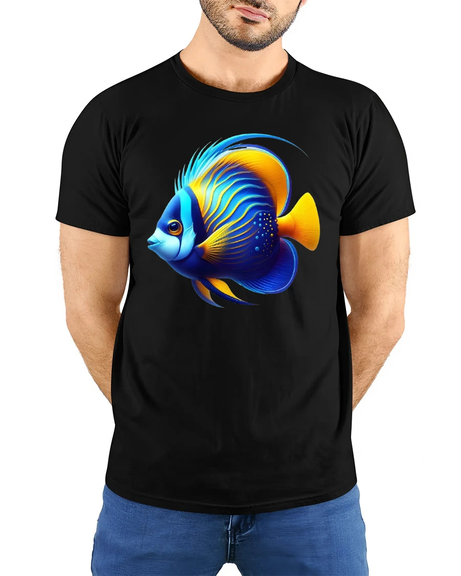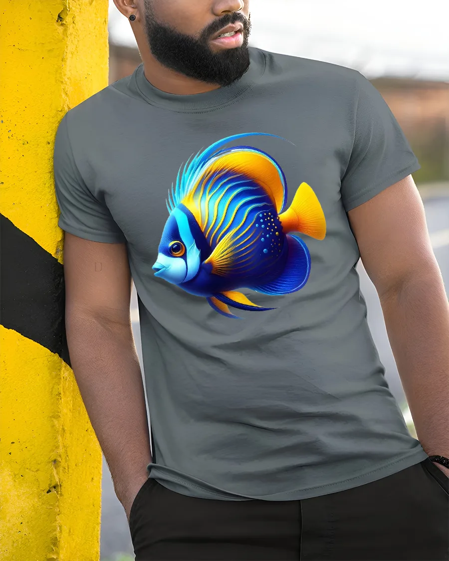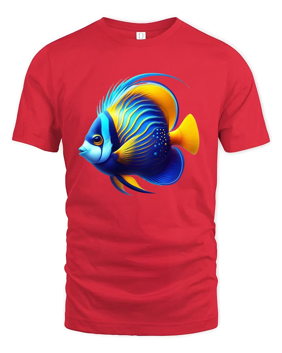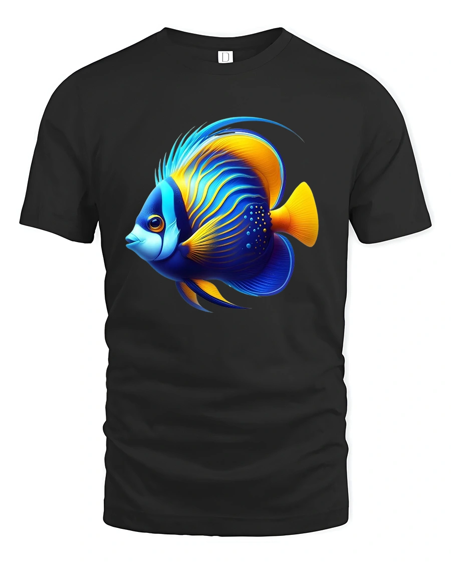 Featuring a detailed blue and yellow tropical fish, this tee captures the calm and magic of ocean life with a bright, artistic twist.