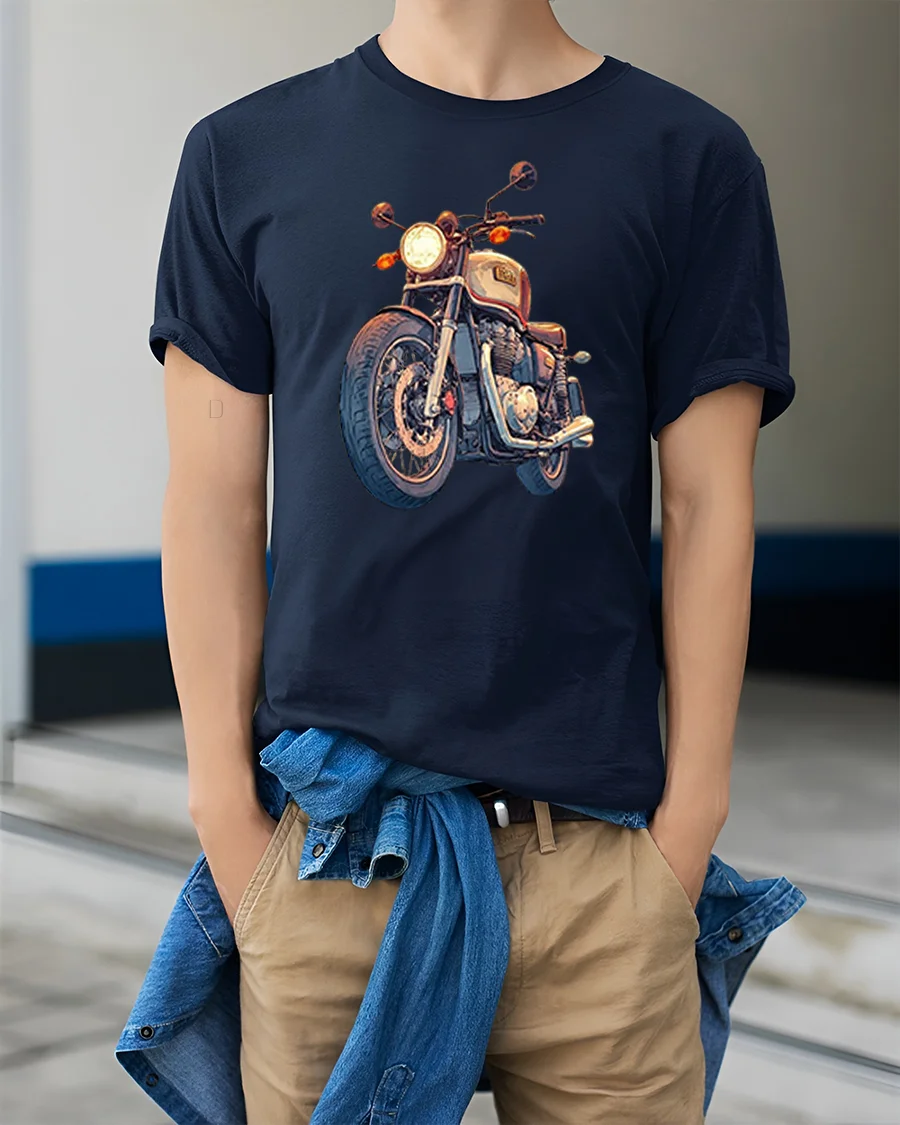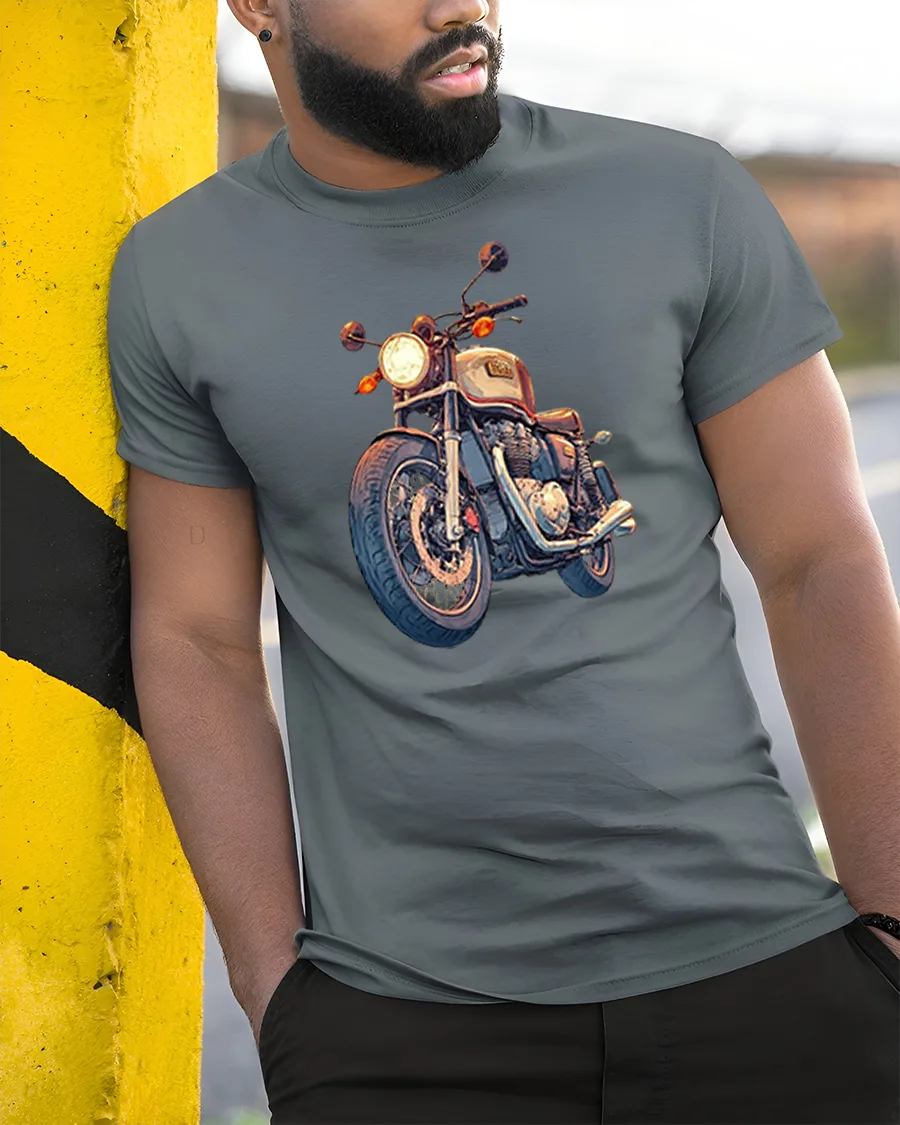 This motorcycle graphic tee is perfect for riders collectors and anyone who loves classic machines and road culture.