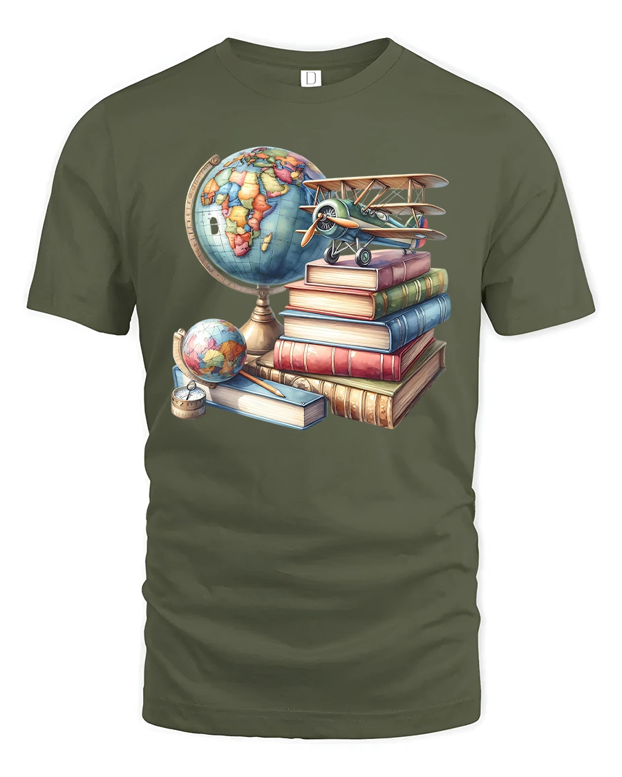 Vintage Globe and Books Graphic T-Shirt for Teachers and Readers blends education, adventure, and timeless charm into one meaningful design. Featuring a beautifully illustrated globe, retro biplane, and a detailed stack of classic books, this tee celebrates the curiosity and knowledge that drive learning and exploration. It’s perfect for teachers, students, readers, travelers, and anyone inspired by the world of education and discovery.