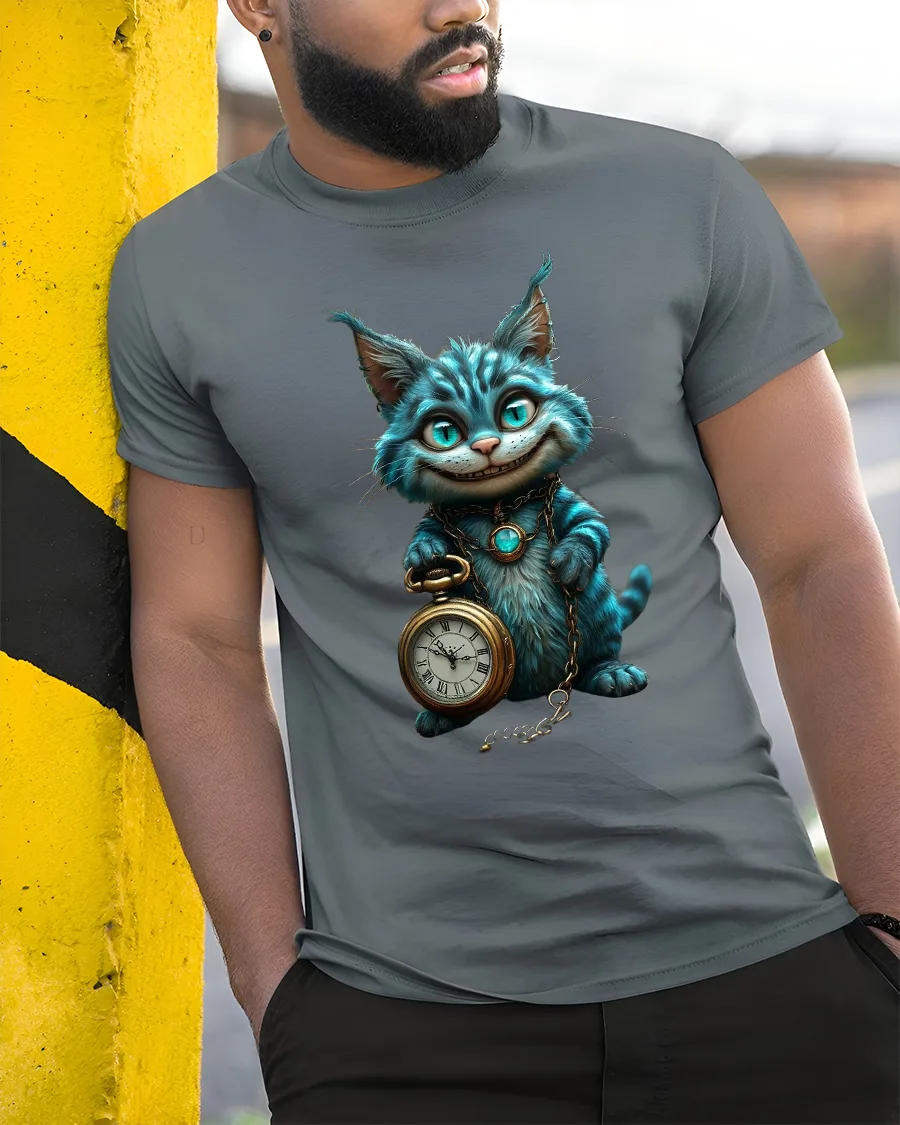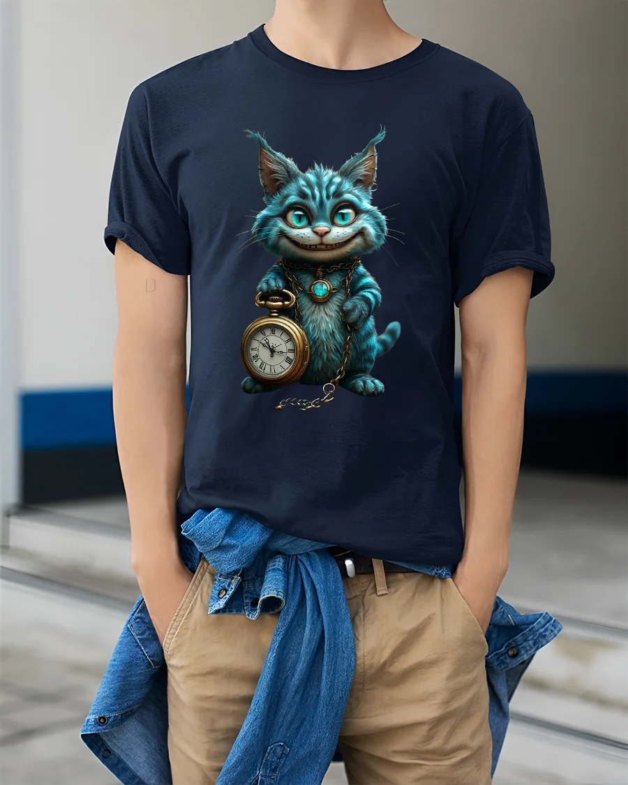 The Whimsical Blue Cat Pocket Watch Fantasy Art T Shirt is crafted to deliver both comfort and visual appeal.