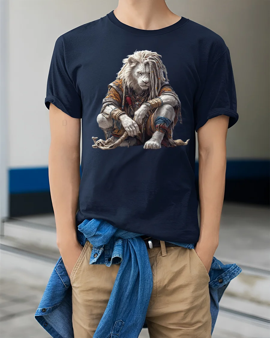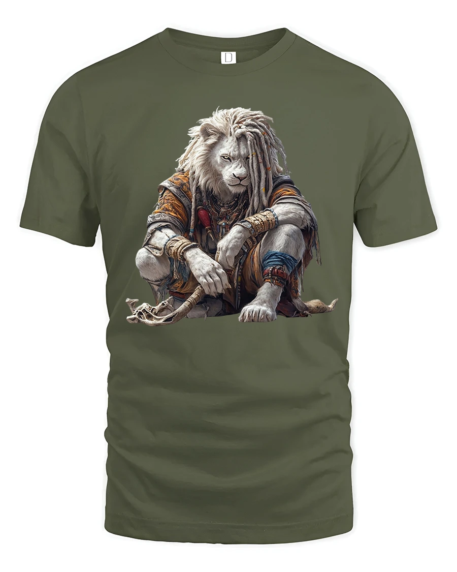 White Lion Warrior Tee Tribal Fantasy Animal Art captures the strength and spirit of the wild in a stunning fantasy design.