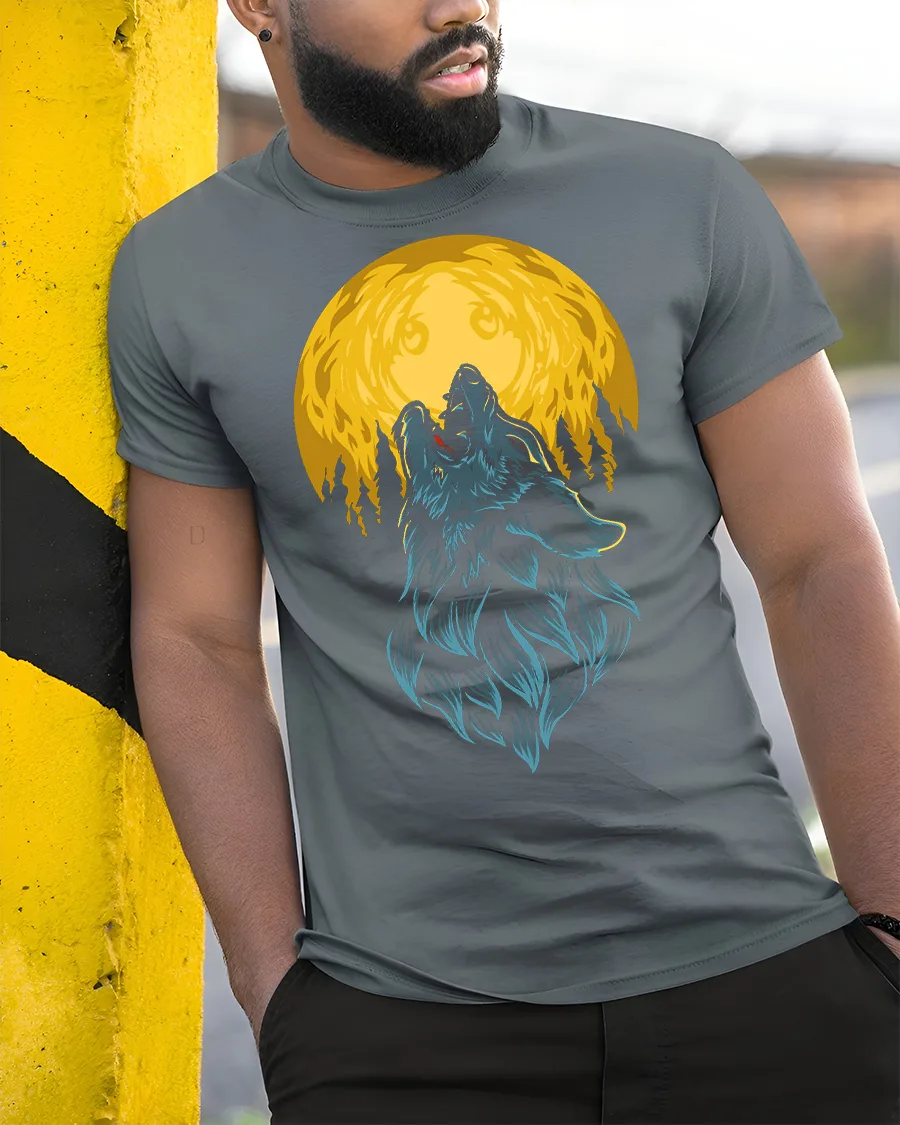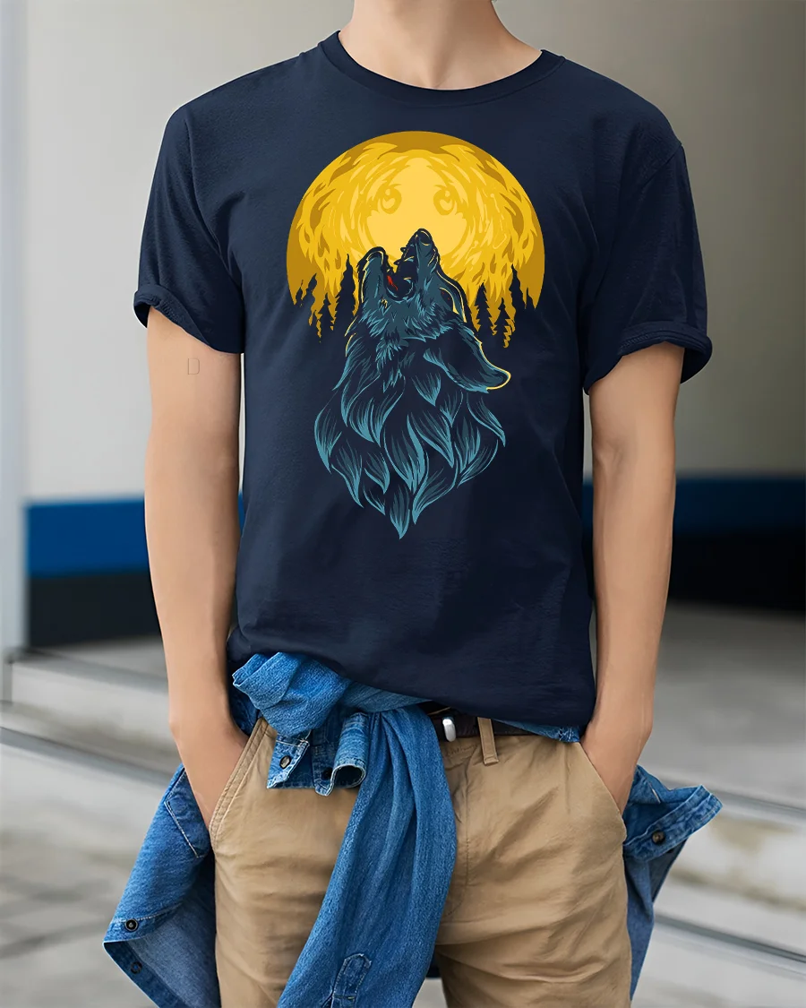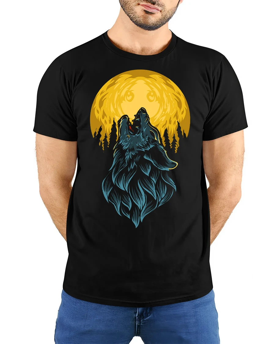 The Wolf Howling at Full Moon Graphic Tee for Men is the perfect shirt for nature lovers, dreamers, and fans of bold animal art. Featuring a striking wolf silhouette against a glowing full moon, this design captures the raw spirit of the wilderness and the mystery of the night.