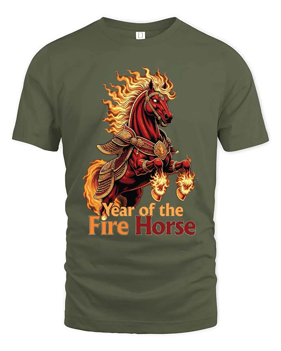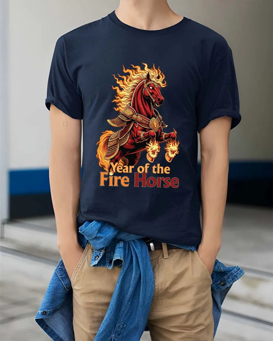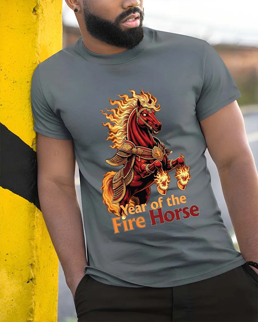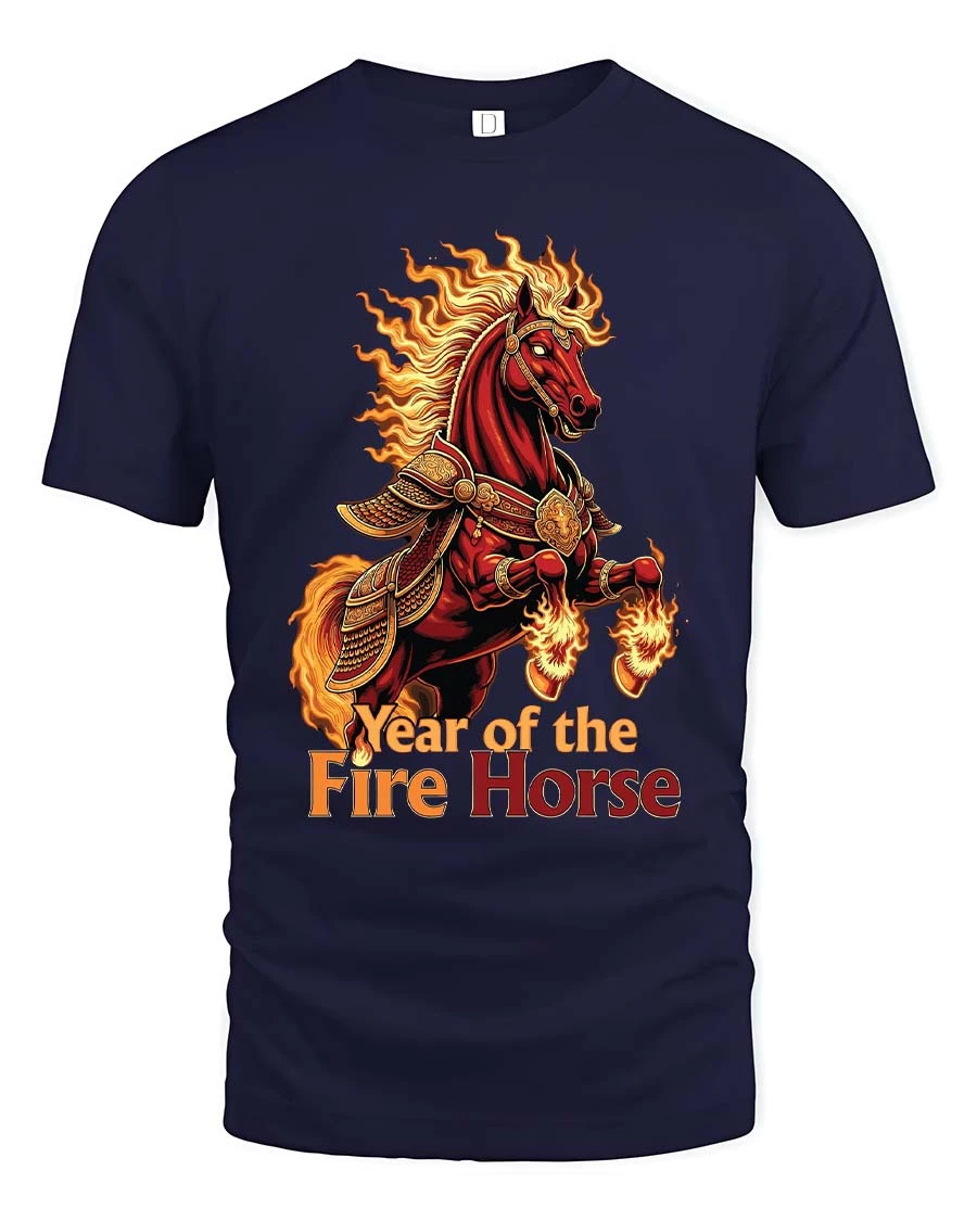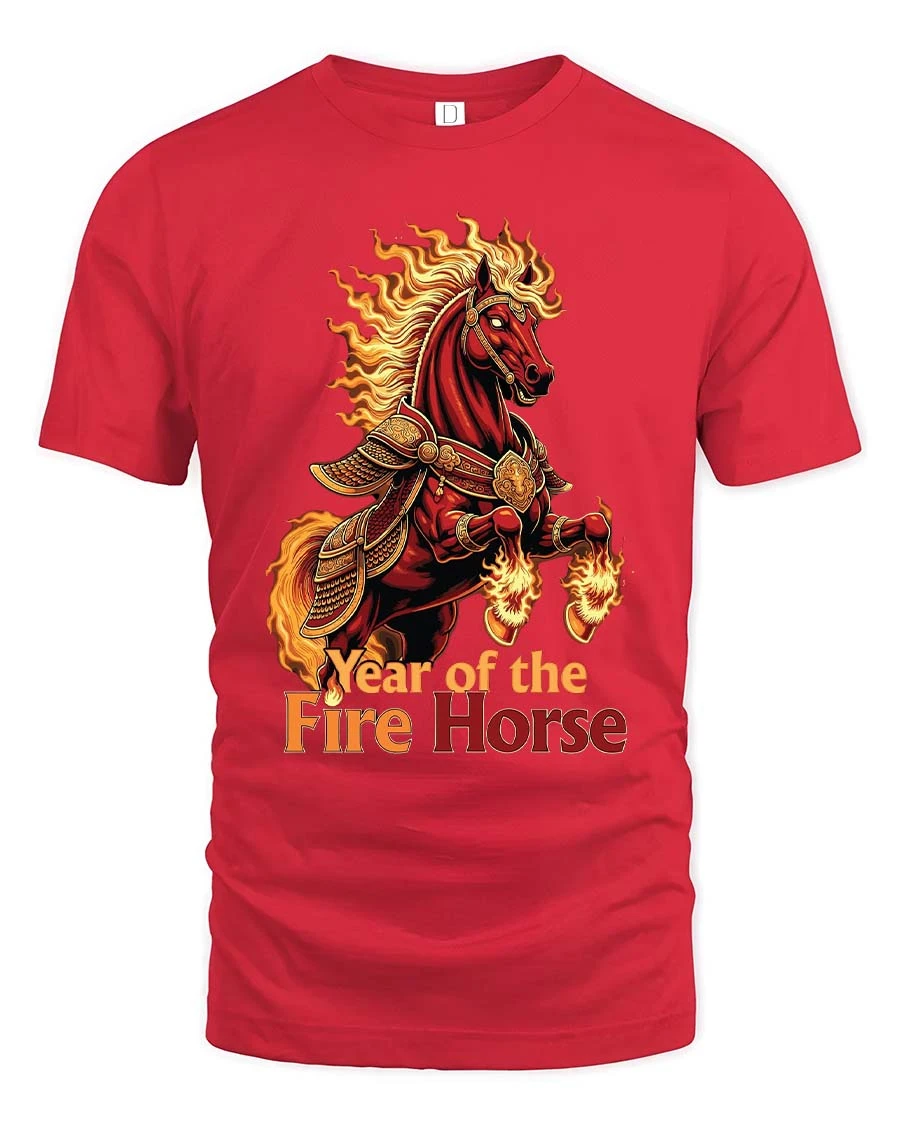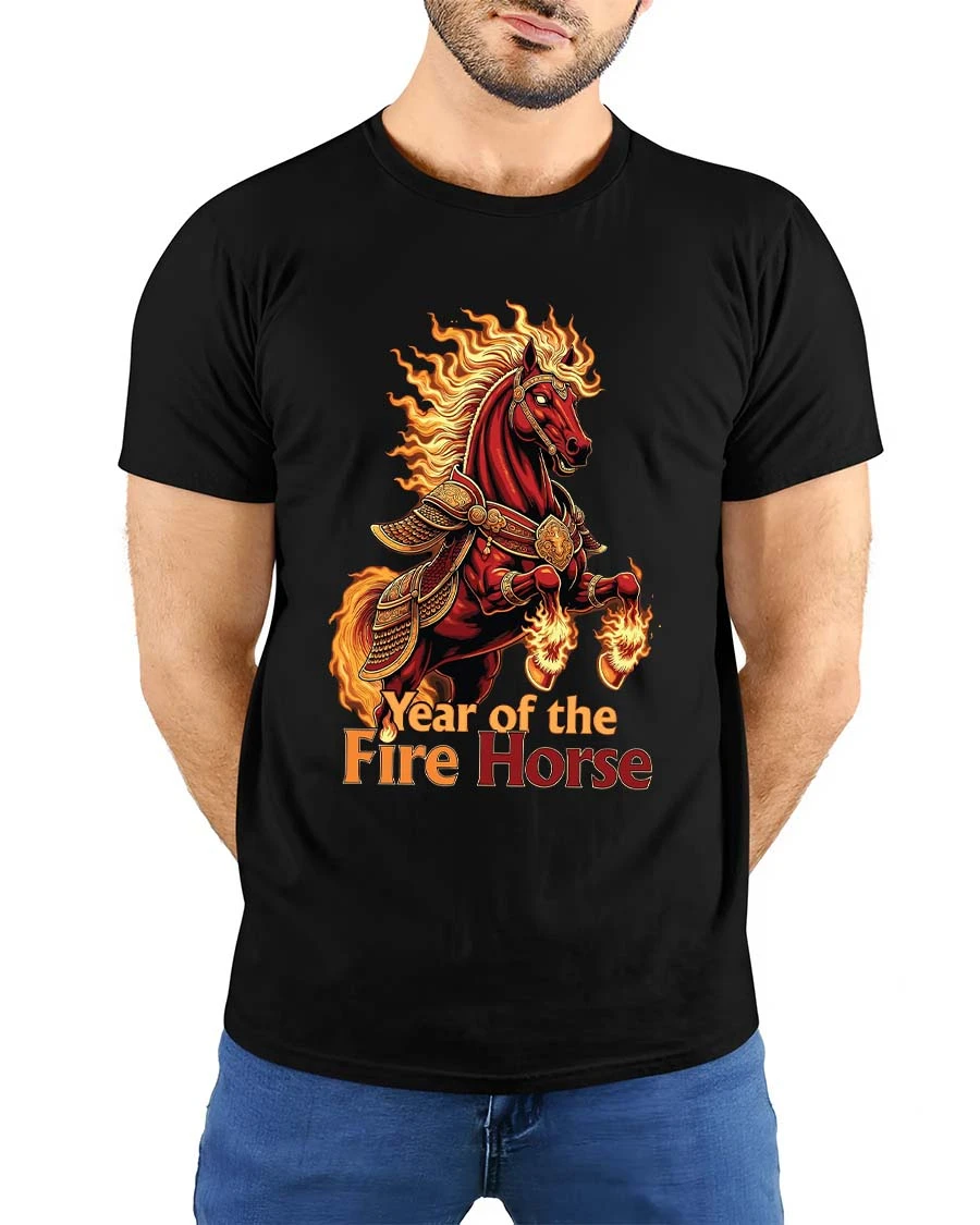 Year of the Fire Horse Zodiac Flame Power Graphic T Shirt captures bold energy and symbolic strength through a striking fiery design.